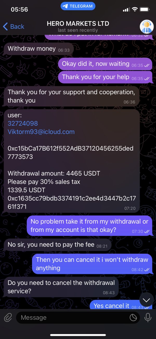 Kurangnya regulasi dan banyak keluhan pengguna menunjukkan bahwa Hero Markets Ltd bukan broker yang dapat dipercaya.