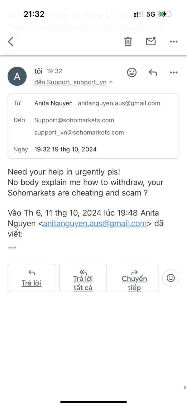 Broker forex profesional biasanya menyediakan beberapa saluran dukungan dengan perwakilan terlatih yang memahami masalah teknis platform dan pertanyaan terkait pasar. Mereka juga biasanya menawarkan dukungan dalam berbagai bahasa untuk melayani basis klien internasional mereka secara efektif. Tanpa bukti yang terdokumentasi tentang kemampuan ini, Soho Markets mungkin menghadapi tantangan dalam memenuhi harapan trader yang memerlukan layanan dukungan yang komprehensif.