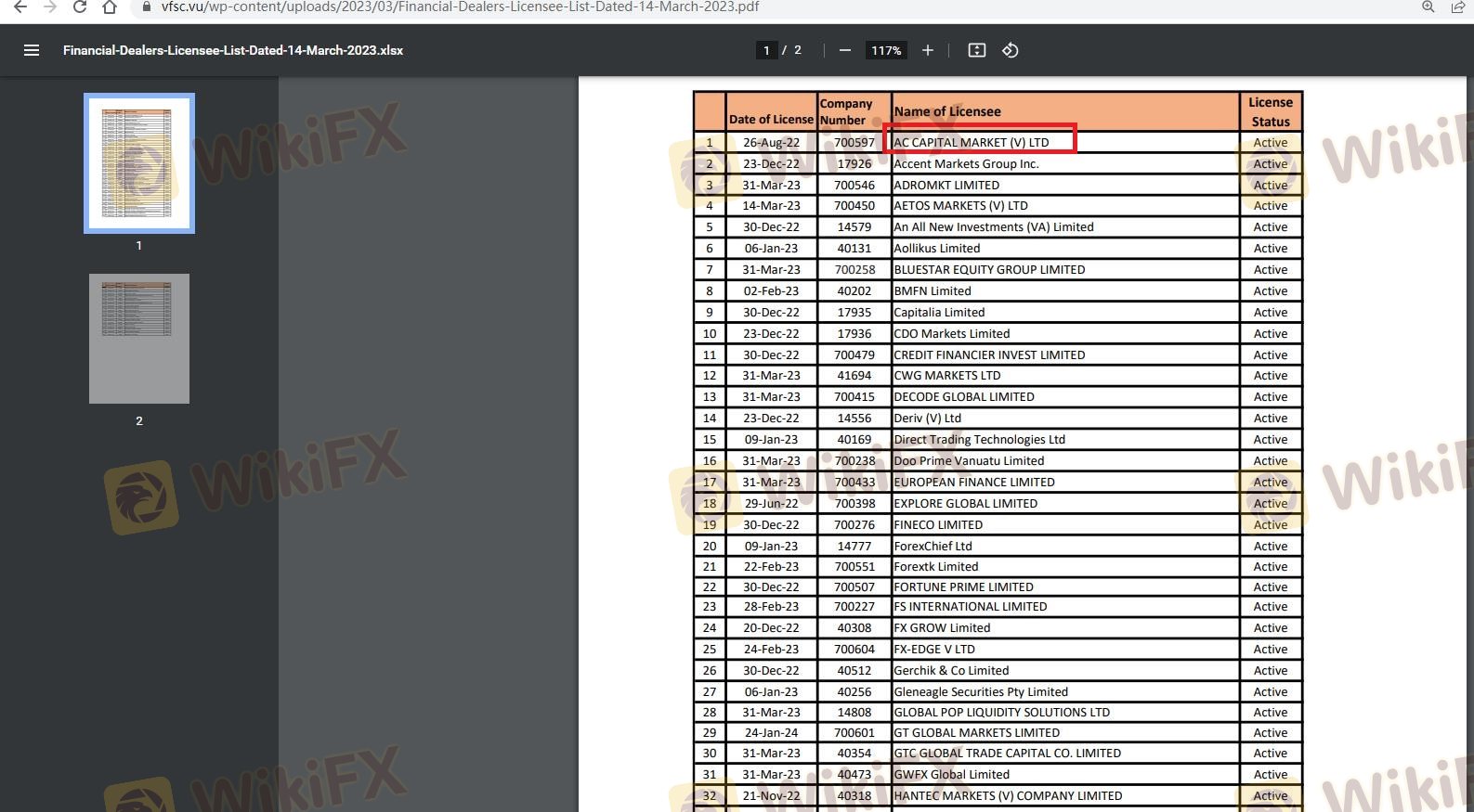 Status regulasi seorang broker sangat penting untuk memastikan keamanan dana klien dan integritas praktik perdagangan. AC Capital Capital mengklaim diatur oleh dua otoritas: Australian Securities and Investments Commission (ASIC) dan Vanuatu Financial Services Commission (VFSC). Sementara ASIC dianggap sebagai regulator tingkat satu dengan standar kepatuhan yang ketat, VFSC sering dikritik karena pengawasannya yang longgar, mengklasifikasikannya sebagai regulator tingkat tiga.