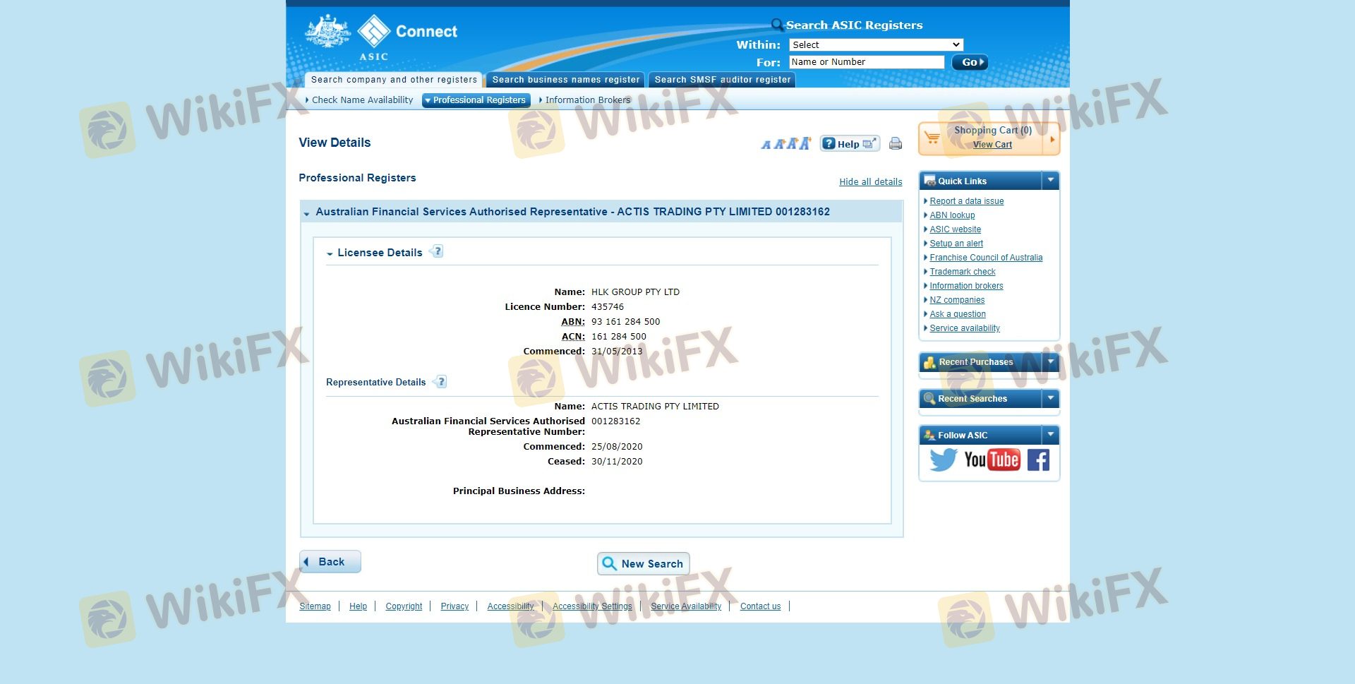 | Regulasi resiko | Tinggi | Lisensi dicabut oleh ASIC |
