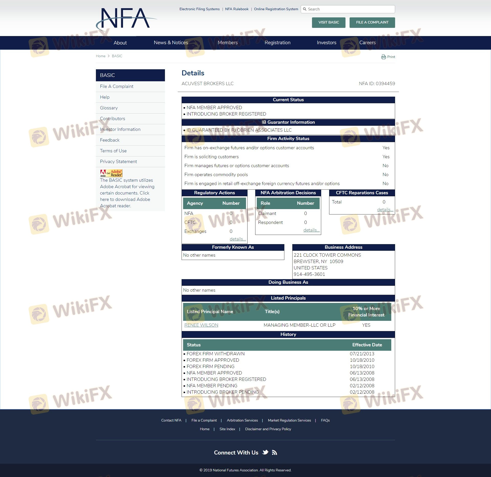 NFA adalah badan pengawas yang terkemuka yang mengawasi perdagangan berjangka di AS dan memastikan bahwa anggotanya mematuhi standar industri. Pendaftaran Acuvest dengan NFA menambah lapisan kredibilitas; namun, penting untuk dicatat bahwa kepatuhan terhadap peraturan tidak menjamin bahwa broker bebas dari masalah. Catatan kepatuhan historis juga harus diperiksa untuk menilai apakah broker pernah menghadapi tindakan disipliner atau keluhan di masa lalu.
