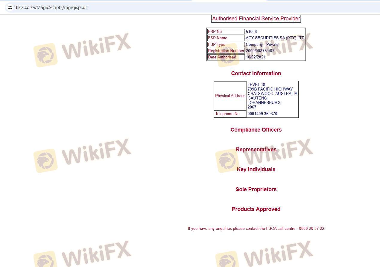 Mengenai legitimasi broker forex ACY SECURITIES, ia menyediakan Australia ASIC, Afrika Selatan FSCA, dan (Kami juga melakukan investigasi lapangan terkait aspek keamanan.).