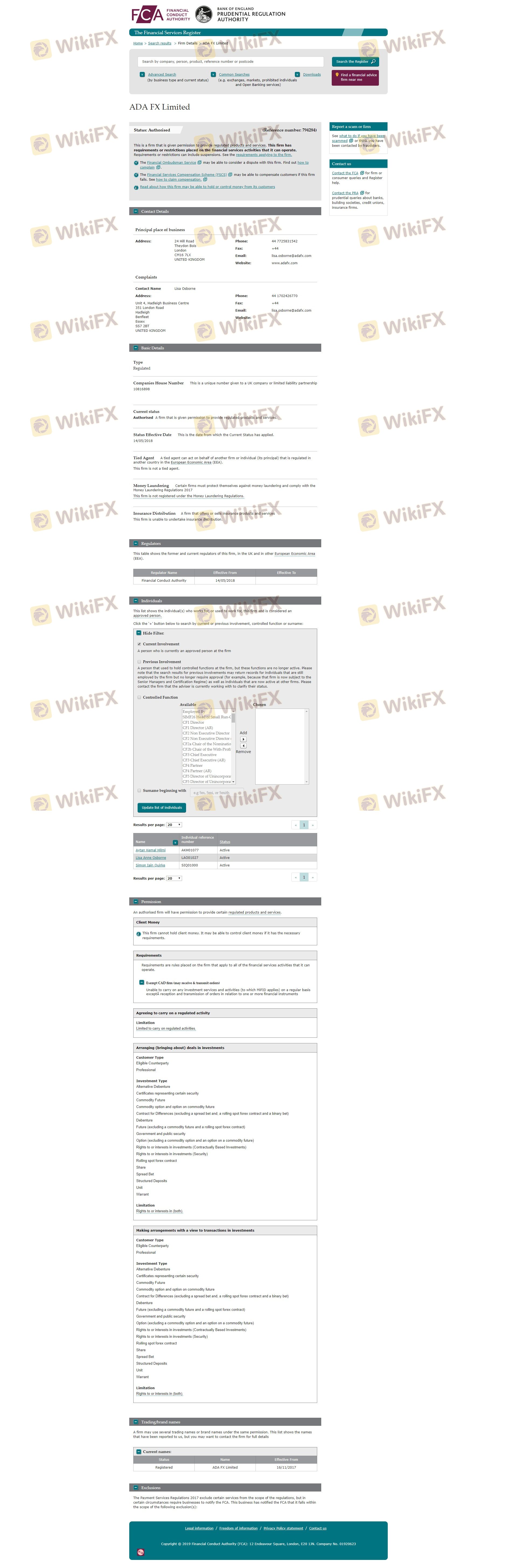 Mengenai legitimasi broker forex ADA Capital Markets, ia menyediakan Kerajaan Inggris FCA, dan .