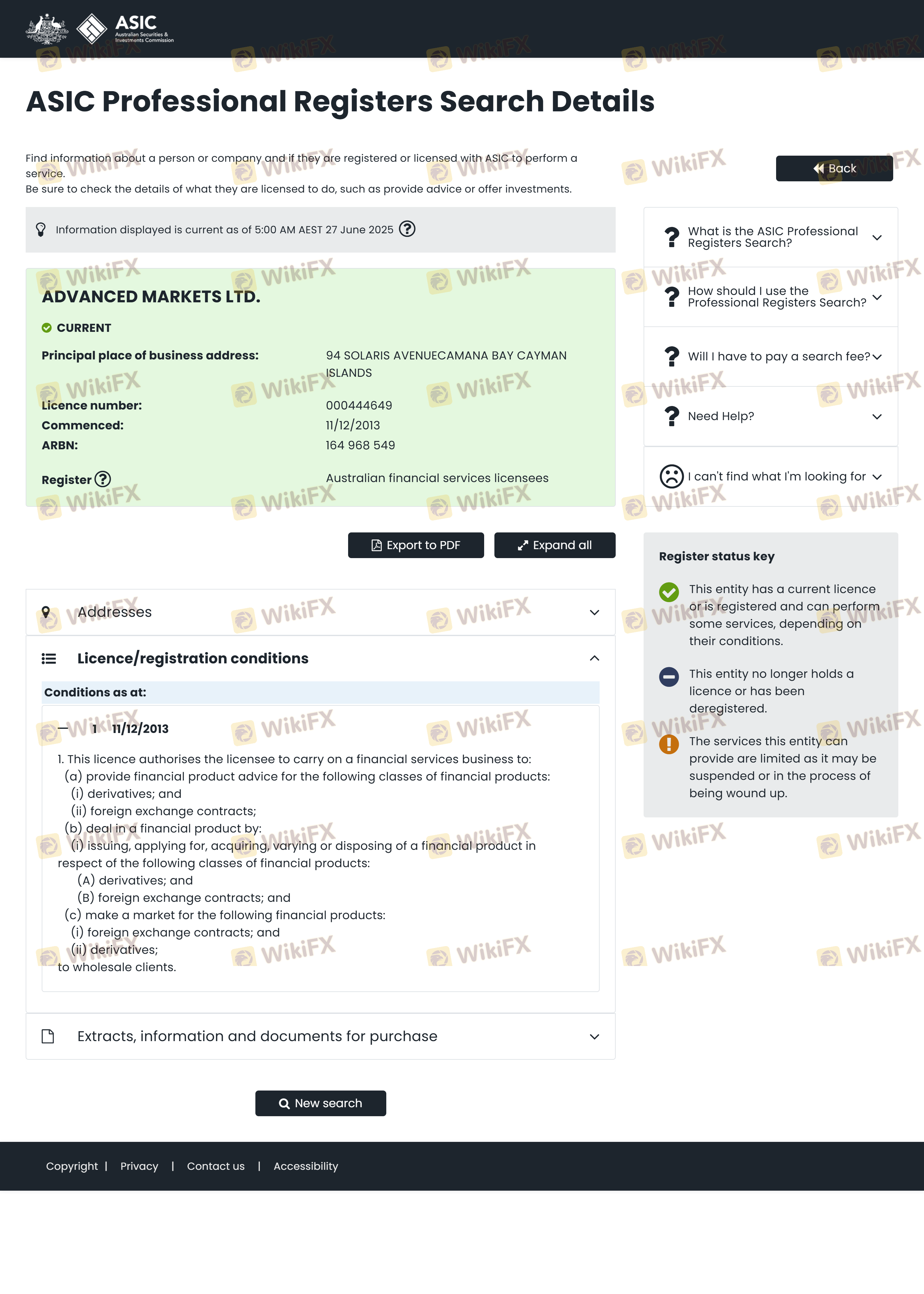 Lingkungan regulasi adalah salah satu aspek paling kritis yang harus dipertimbangkan saat mengevaluasi broker forex. Advanced Markets beroperasi di bawah pengawasan beberapa badan regulasi, yang menambah lapisan legitimasi pada operasinya. Berikut adalah ringkasan informasi regulasinya: