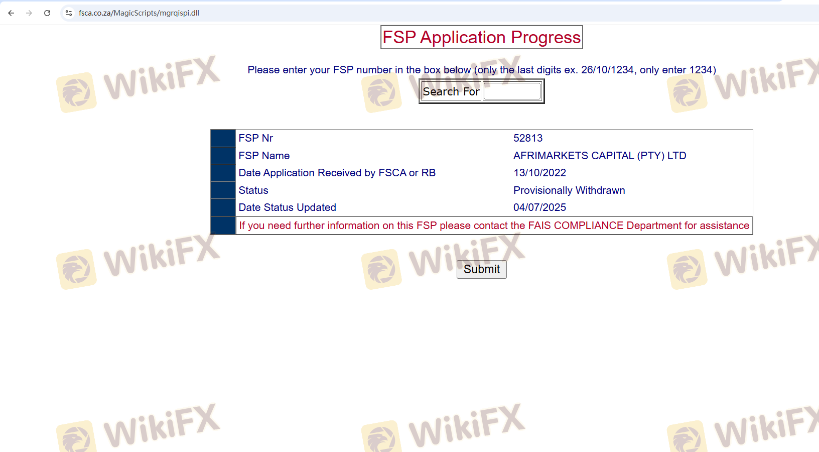 Memahami kerangka regulasi yang mengatur platform trading sangat penting untuk menilai legitimasinya. AfriMarkets mengklaim beroperasi di bawah Financial Sector Conduct Authority (FSCA) di Afrika Selatan, yang merupakan badan pengawas penting untuk layanan keuangan di negara tersebut. Namun, ada kekhawatiran mengenai keaslian lisensinya dan apakah platform ini mematuhi standar regulasi yang diperlukan.