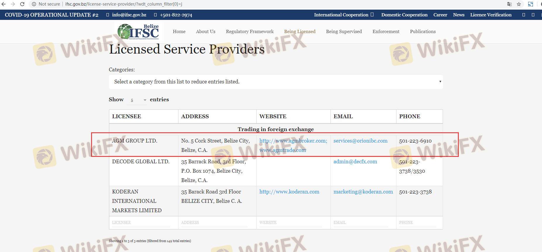 Mengenai legitimasi broker forex AGM Group, ia menyediakan Belize FSC, dan .