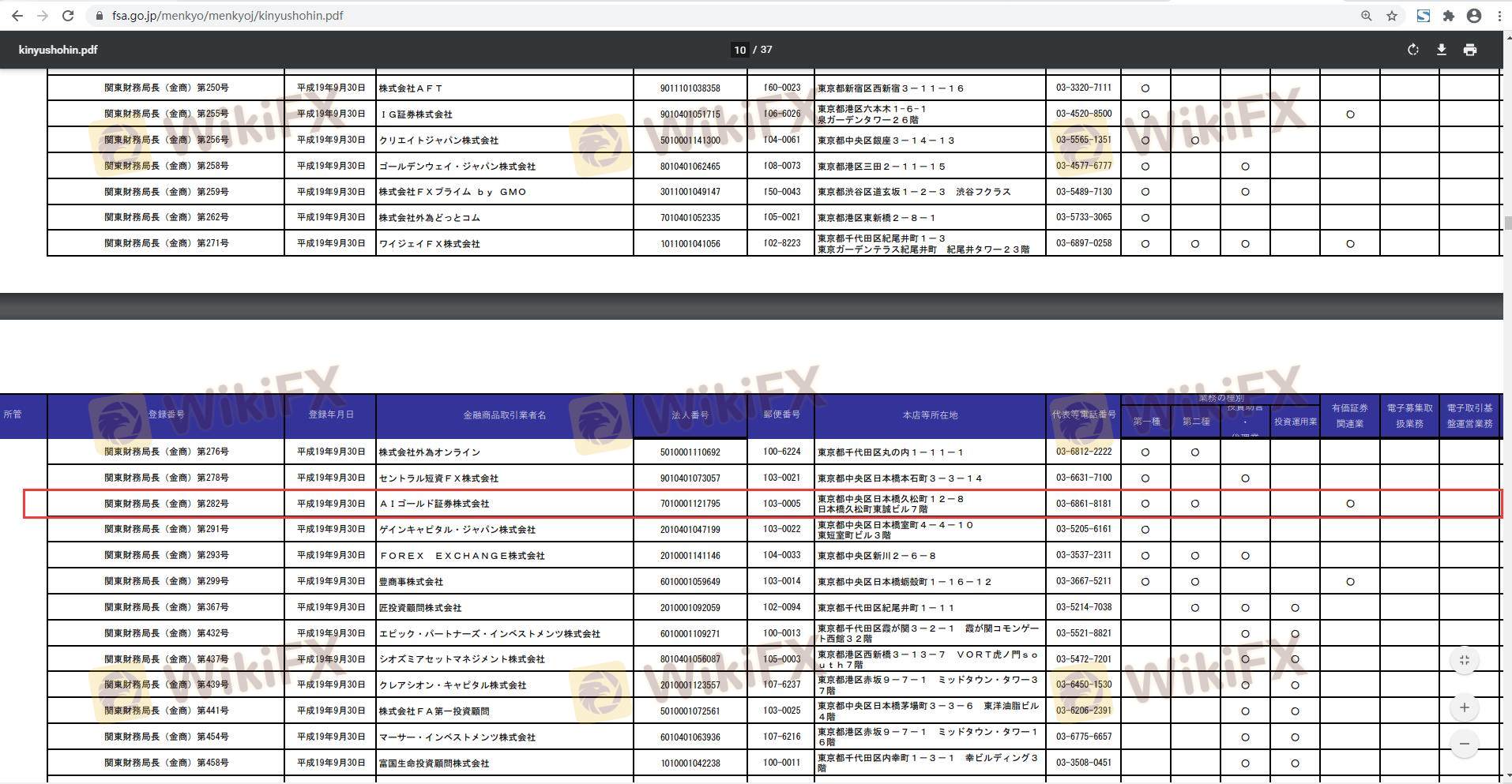 Mengenai legitimasi broker forex AI GOLD, ia menyediakan Jepang FSA, dan (Kami juga melakukan investigasi lapangan terkait aspek keamanan.).