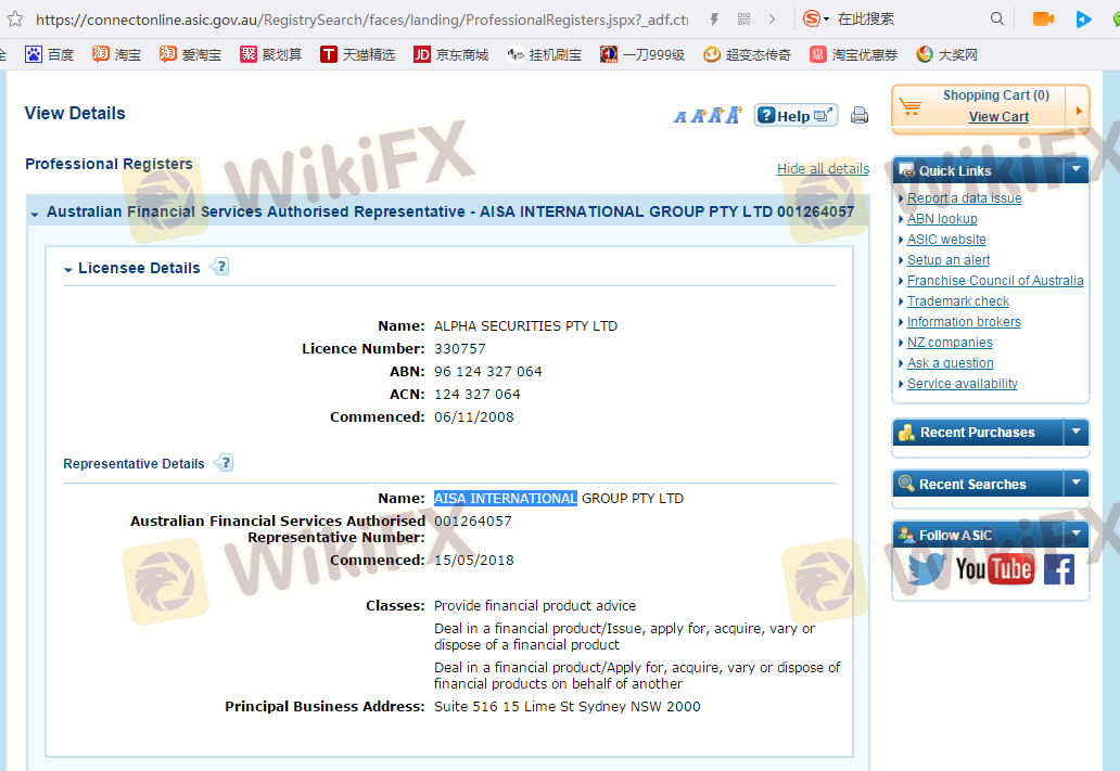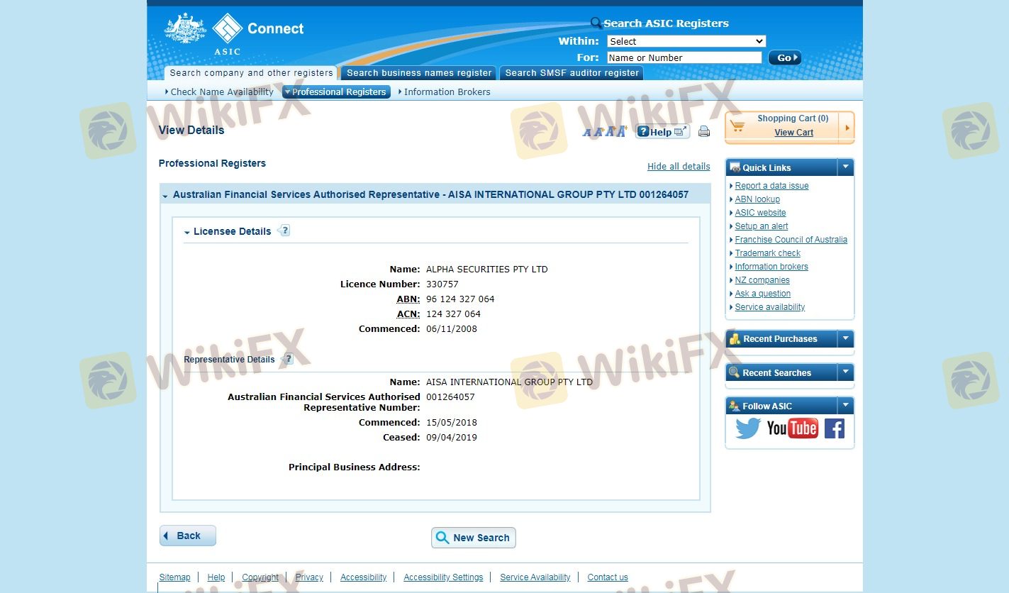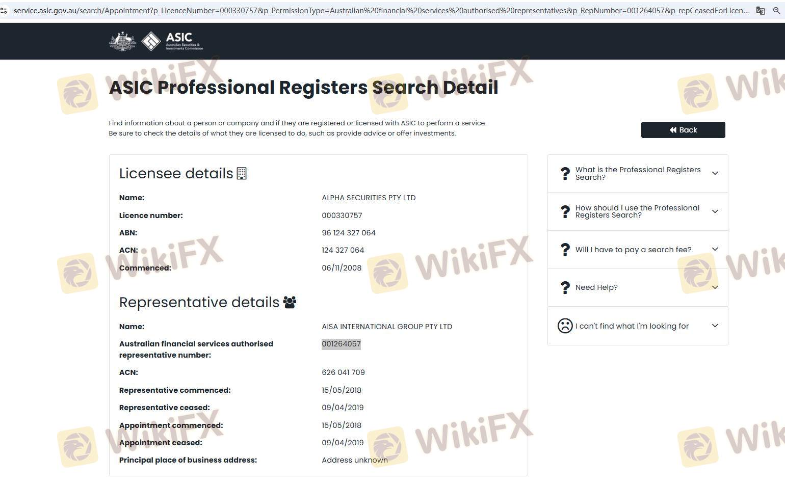 Mengenai legitimasi broker forex AISA, ia menyediakan Australia ASIC, dan (Kami juga melakukan investigasi lapangan terkait aspek keamanan.).