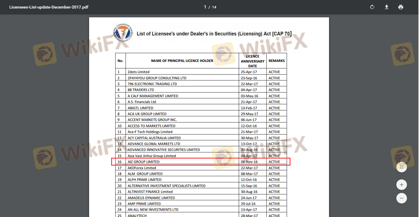 AizForex, yang beroperasi dengan nama Aiz Group Limited, memiliki sejarah yang relatif tidak jelas. Informasi yang tersedia secara publik tentang pendiriannya, struktur kepemilikan, atau pengalaman tim manajemennya terbatas. Ketidakjelasan ini menimbulkan kekhawatiran tentang transparansi dan akuntabilitas broker. Pemeriksaan menyeluruh terhadap latar belakang perusahaan mengungkap bahwa broker ini terutama melayani pasar Tiongkok, yang mungkin membatasi pengawasan operasional dan langkah perlindungan klien.