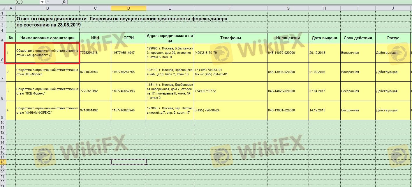 Mengenai legitimasi broker forex AlfaForex, ia menyediakan Siprus CYSEC, Rusia CBR, dan (Kami juga melakukan investigasi lapangan terkait aspek keamanan.).