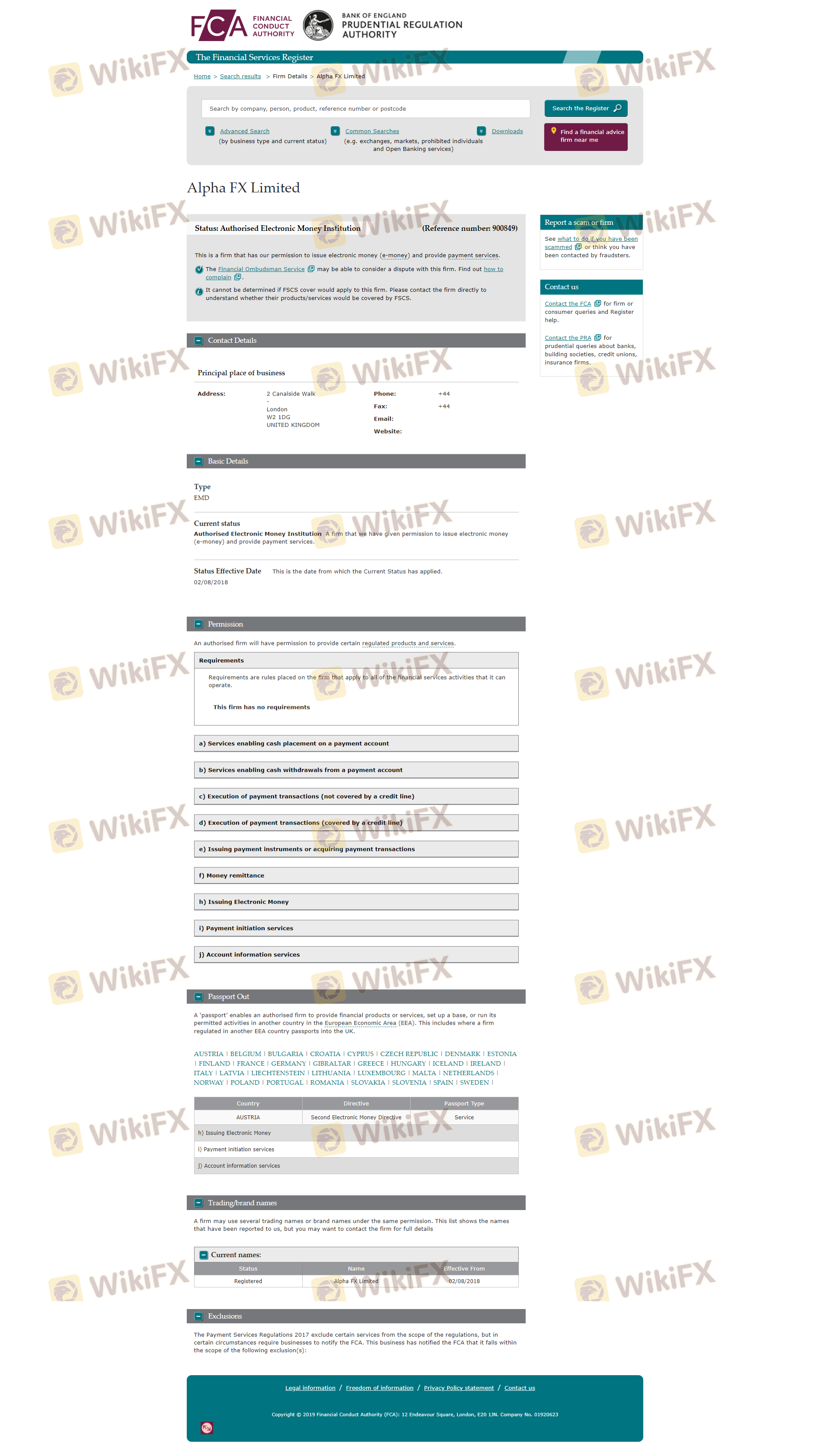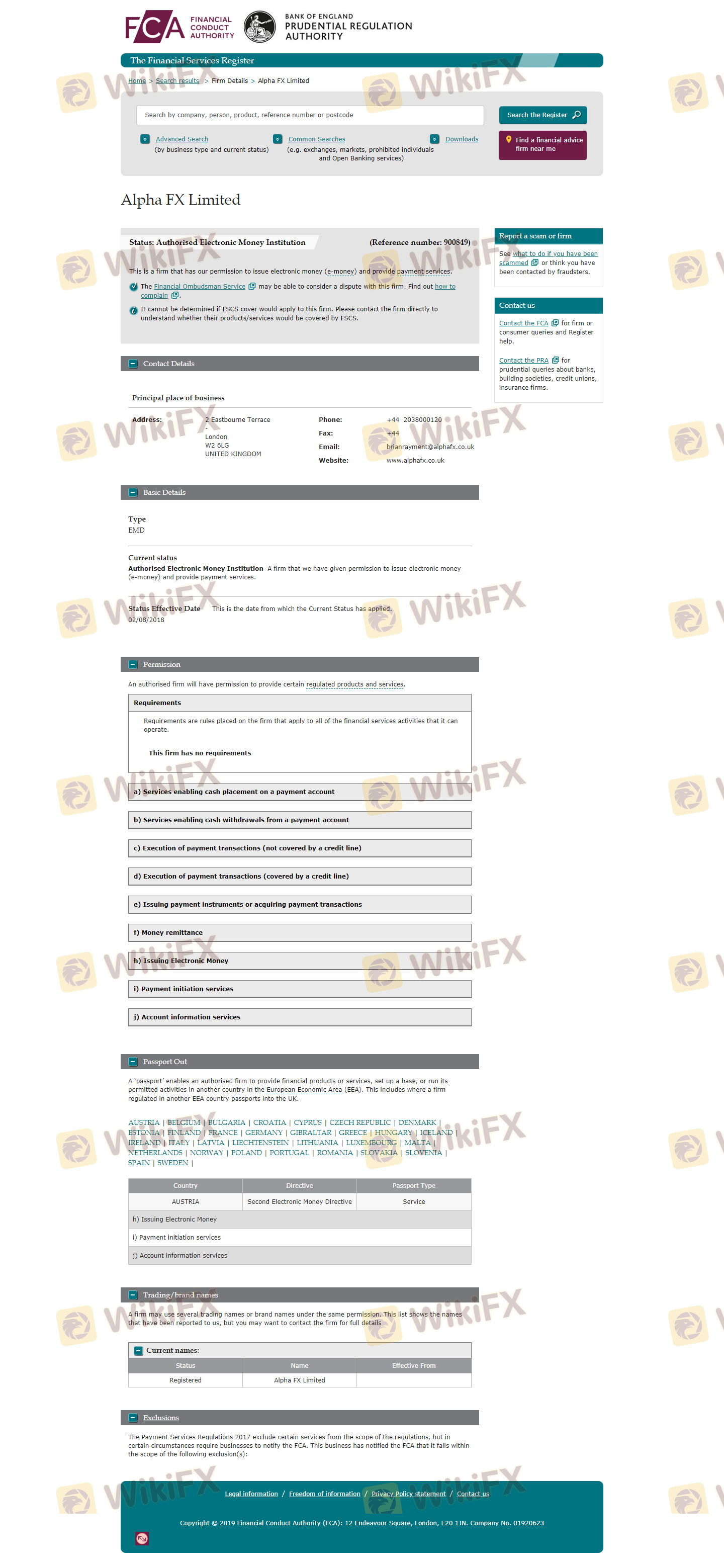 Mengenai legitimasi broker forex Alpha FX, ia menyediakan Kerajaan Inggris FCA, Kerajaan Inggris FCA, dan (Kami juga melakukan investigasi lapangan terkait aspek keamanan.).