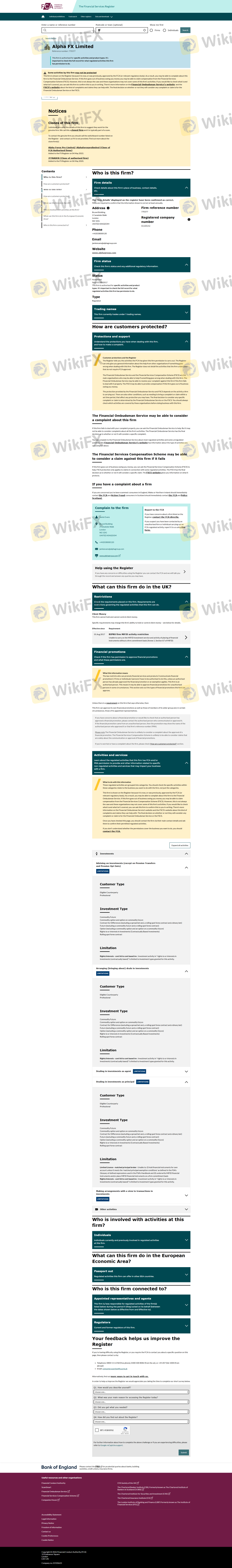 Mengenai legitimasi broker forex Alpha FX, ia menyediakan Kerajaan Inggris FCA, dan (Kami juga melakukan investigasi lapangan terkait aspek keamanan.).
