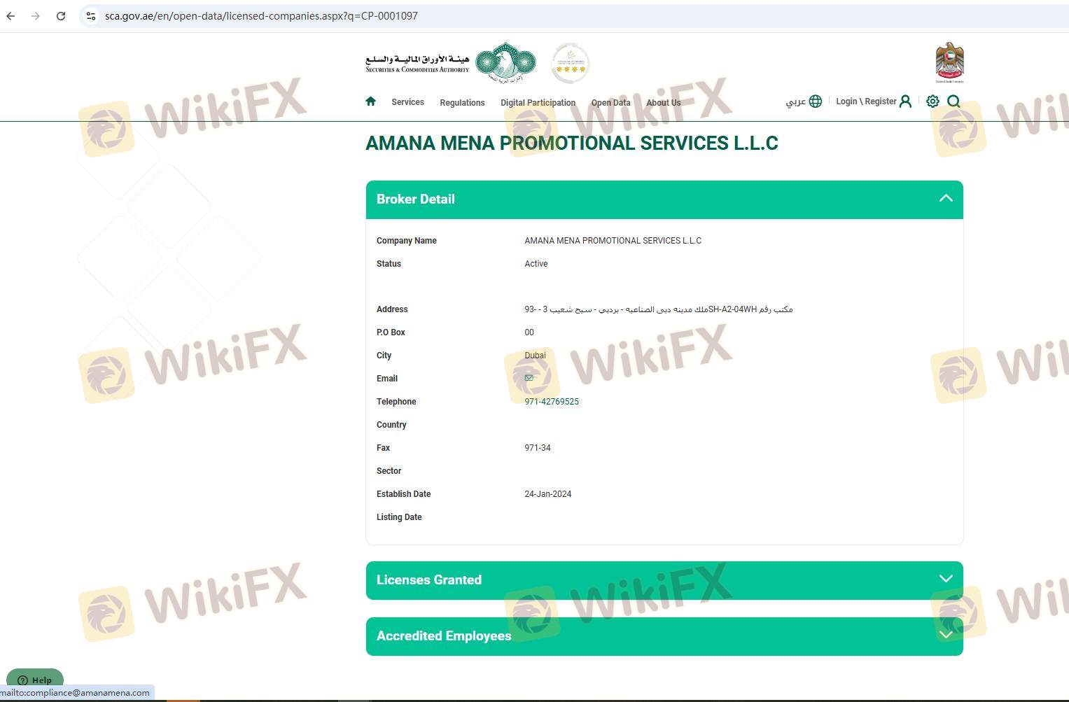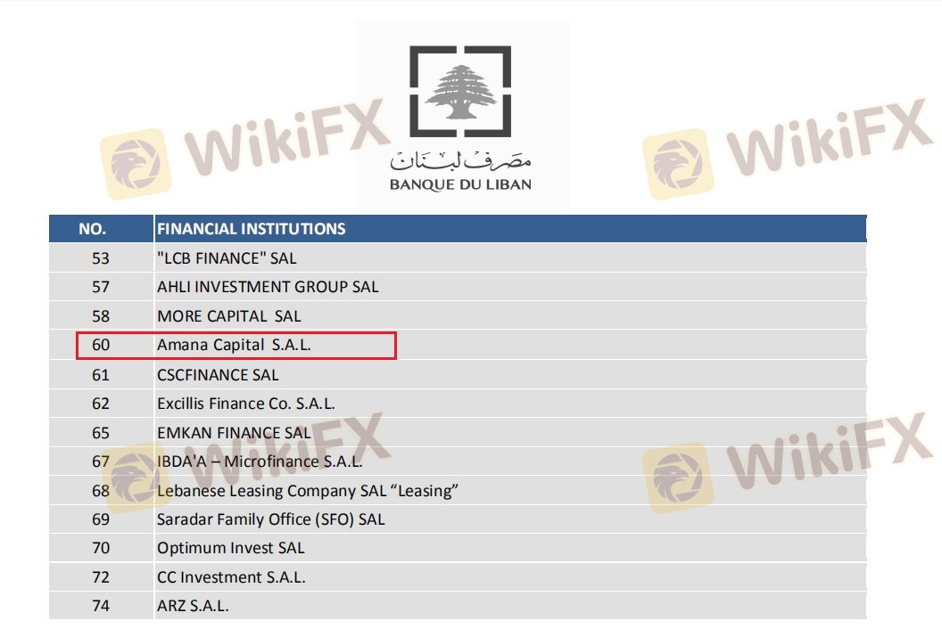 Mengenai legitimasi broker forex amana, ia menyediakan Siprus CYSEC, Uni Emirat Arab DFSA, Lebanon CMA, Lebanon BDL, Malaysia LFSA, Uni Emirat Arab SCA, Kerajaan Inggris FCA, dan (Kami juga melakukan investigasi lapangan terkait aspek keamanan.).