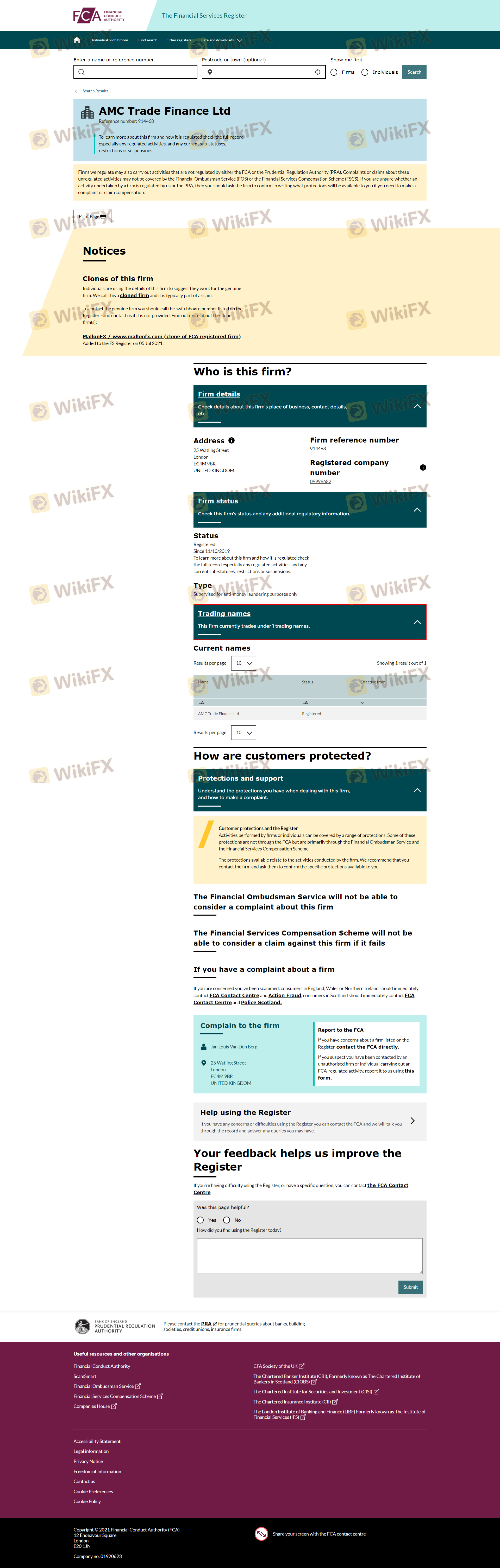 Status regulasi seorang broker forex sangat penting untuk memastikan keamanan dana klien dan integritas praktik perdagangan. AmcTrade mengklaim diatur oleh Financial Conduct Authority (FCA) di Inggris; namun, beberapa sumber telah menyoroti bahwa broker ini memiliki "regulasi klon yang mencurigakan." Hal ini menimbulkan kekhawatiran besar tentang legitimasi operasinya. Berikut adalah ringkasan informasi regulasi: