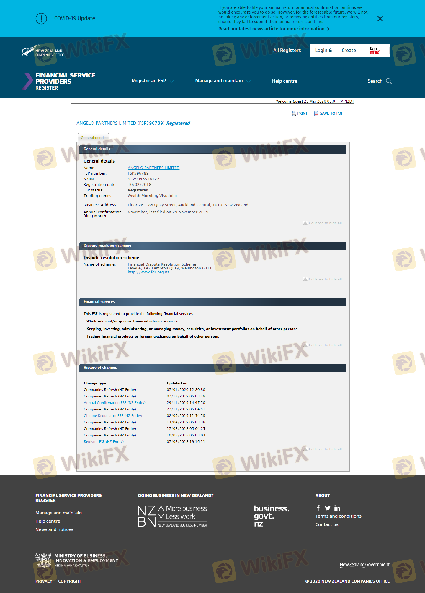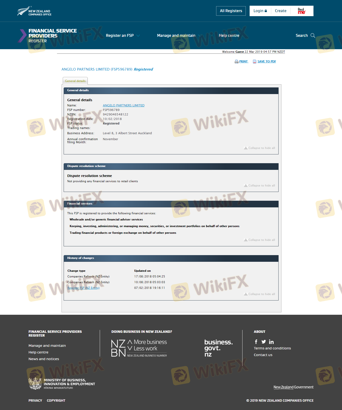 Mengenai legitimasi broker forex ANGELO, ia menyediakan Selandia Baru FSPR, dan (Kami juga melakukan investigasi lapangan terkait aspek keamanan.).