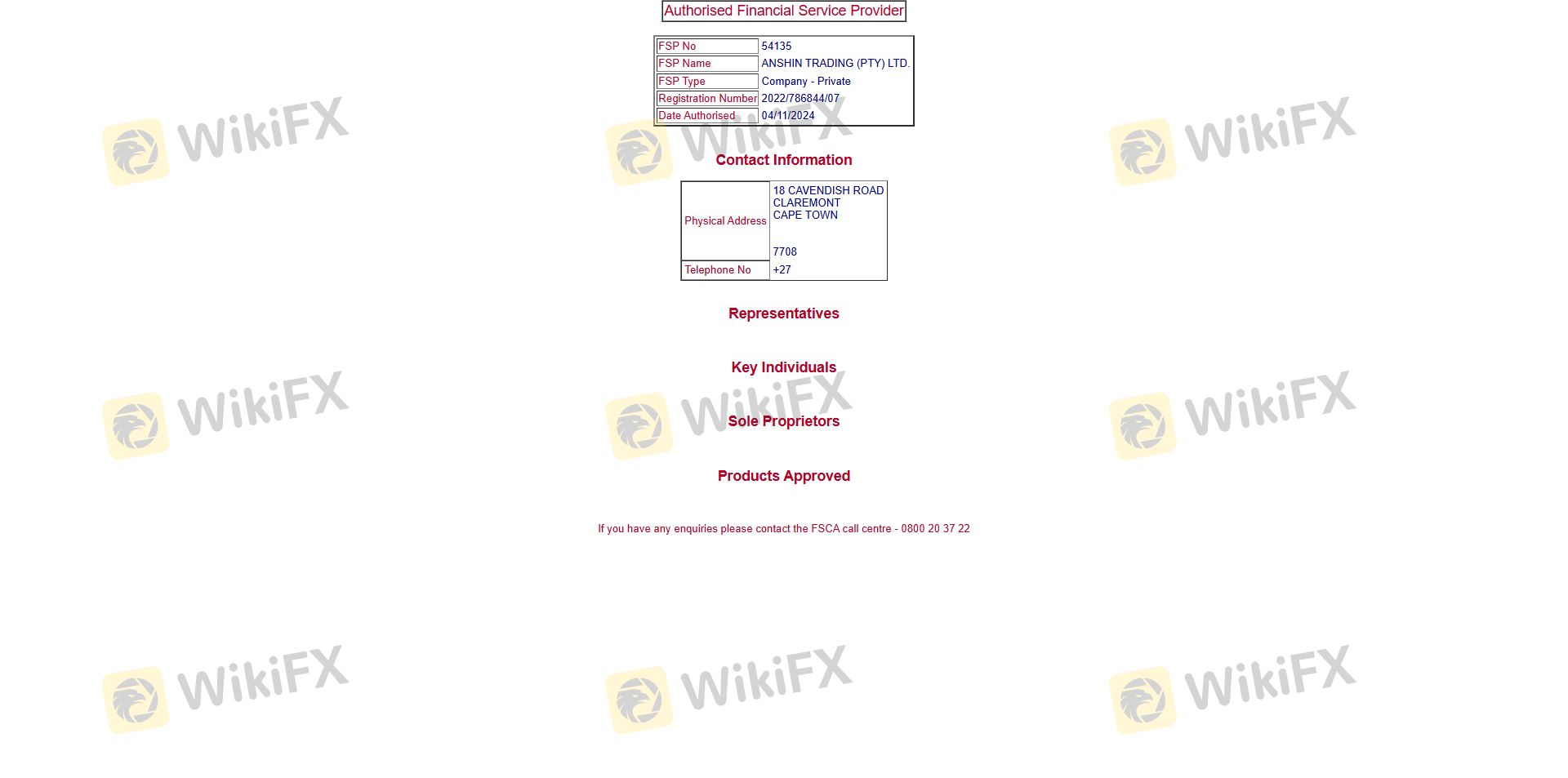 Mengenai legitimasi broker forex Anshin, ia menyediakan Afrika Selatan FSCA, dan .