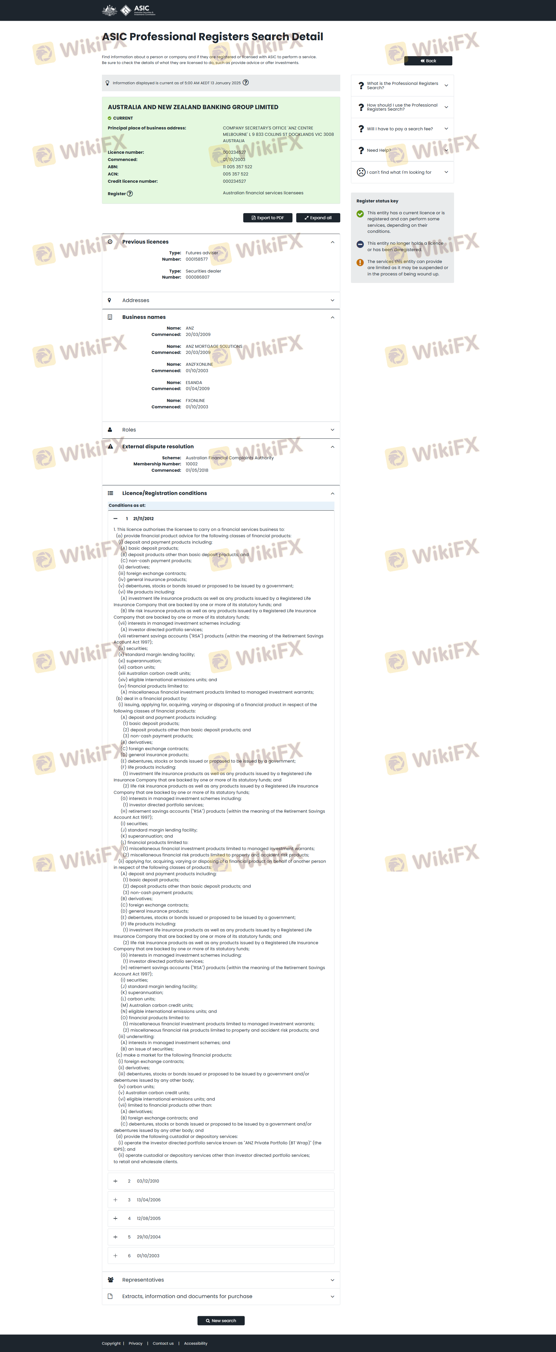 ANZ beroperasi di bawah pengawasan Australian Securities and Investments Commission (ASIC), yang dikenal dengan regulasinya yang ketat untuk melindungi investor. Kepatuhan terhadap regulasi adalah indikator penting dari legitimasi broker, karena memastikan bahwa mereka mematuhi standar tertentu yang dirancang untuk melindungi dana dan kepentingan klien.