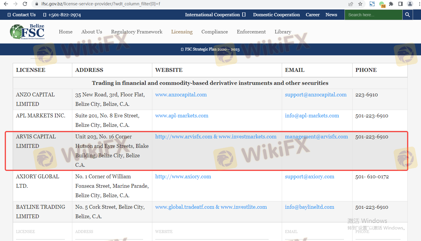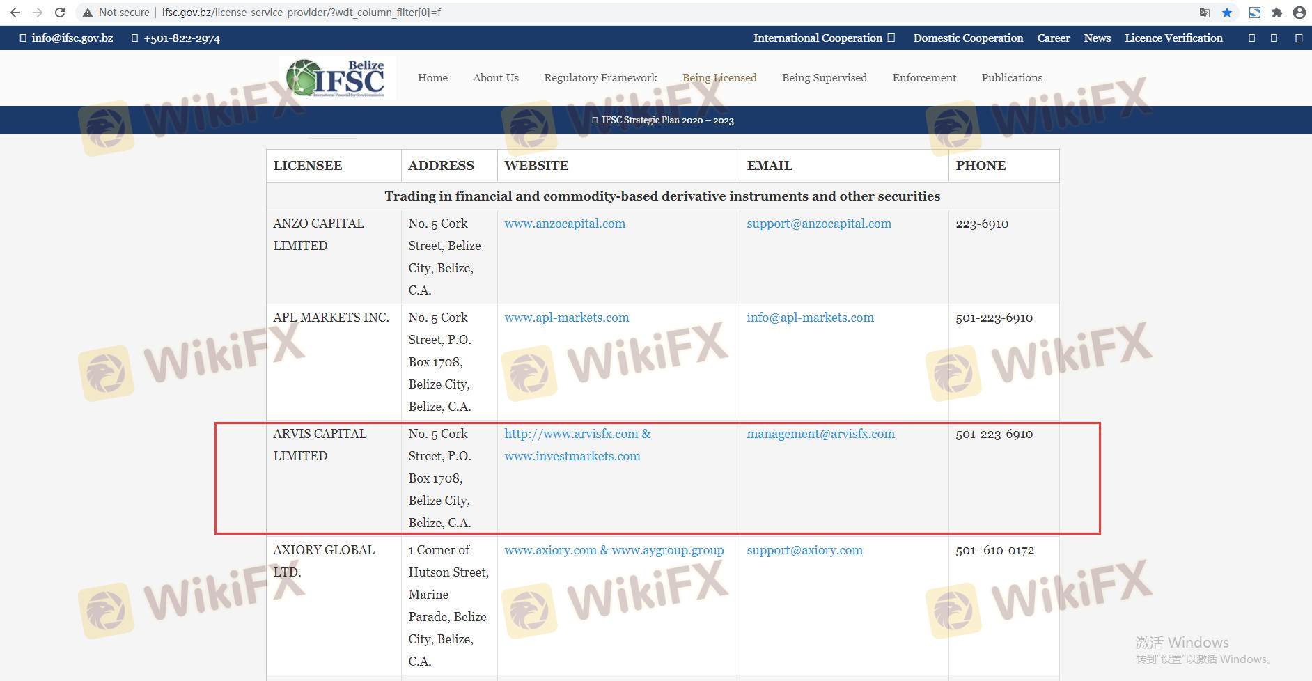 Mengenai legitimasi broker forex ARVIS.FX, ia menyediakan Belize FSC, dan (Kami juga melakukan investigasi lapangan terkait aspek keamanan.).