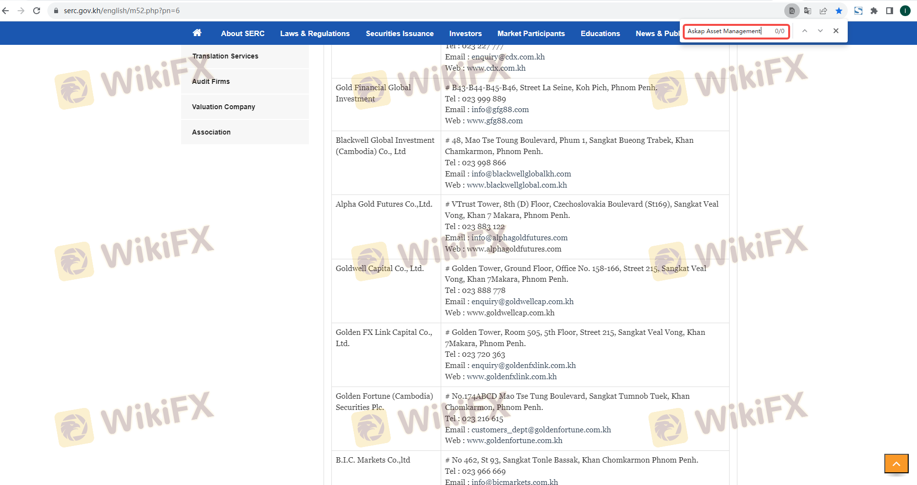 Mengenai legitimasi broker forex ASKAP, ia menyediakan Kamboja SERC, dan (Kami juga melakukan investigasi lapangan terkait aspek keamanan.).