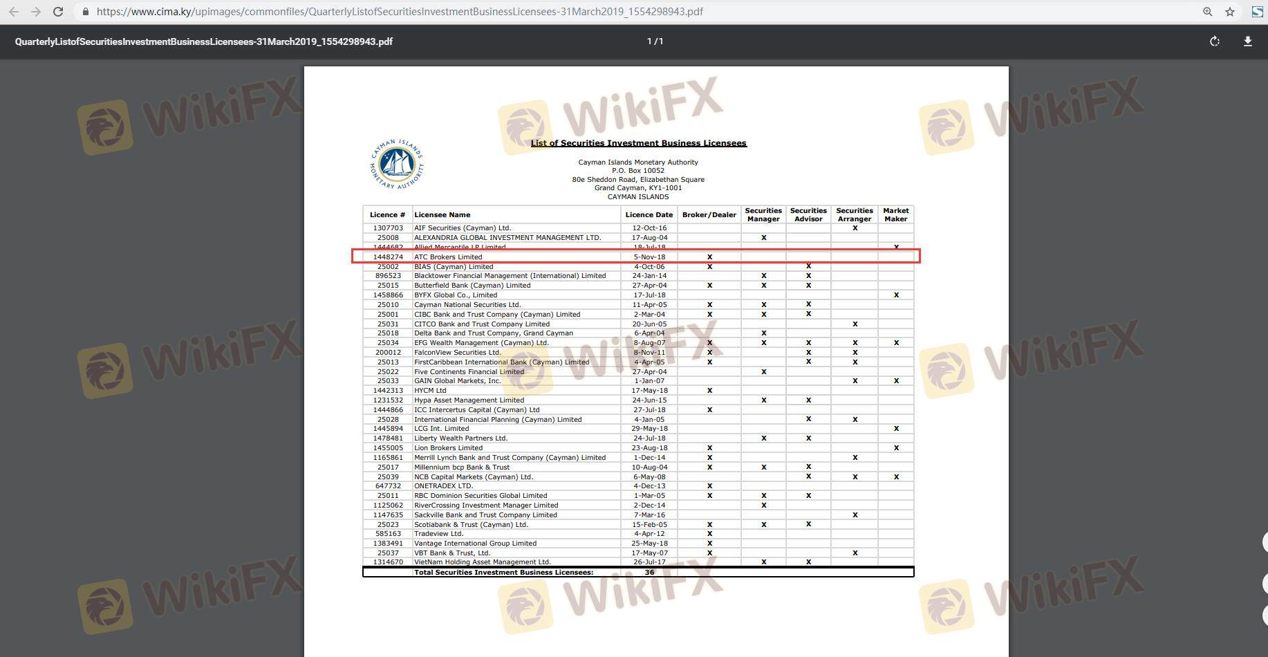Mengenai legitimasi broker forex ATC BROKERS, ia menyediakan Kerajaan Inggris FCA, Kepulauan Cayman CIMA, dan (Kami juga melakukan investigasi lapangan terkait aspek keamanan.).