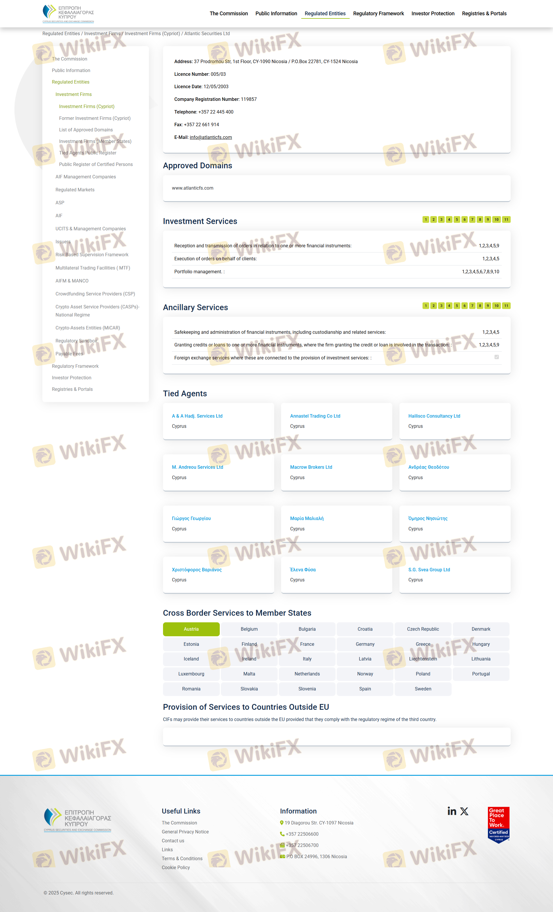 Atlantic Securities adalah perusahaan pialang yang berbasis di Siprus, didirikan pada tahun 2001, yang menawarkan berbagai layanan perdagangan di pasar forex. Seiring lanskap keuangan yang semakin kompleks dan kompetitif, para trader harus mendekati setiap pialang dengan hati-hati. Potensi penipuan dan aktivitas penipuan selalu ada, sehingga sangat penting bagi investor untuk mengevaluasi secara menyeluruh legitimasi dan keamanan mitra perdagangan mereka. Artikel ini memberikan analisis mendalam tentang Atlantic Securities, fokus pada status regulasi, latar belakang perusahaan, kondisi perdagangan, umpan balik pelanggan, dan penilaian risiko secara keseluruhan. Kami telah menggunakan metodologi investigasi komprehensif yang mencakup tinjauan basis data regulasi, ulasan pelanggan, dan pendapat ahli untuk menentukan apakah Atlantic Securities aman atau penipuan.