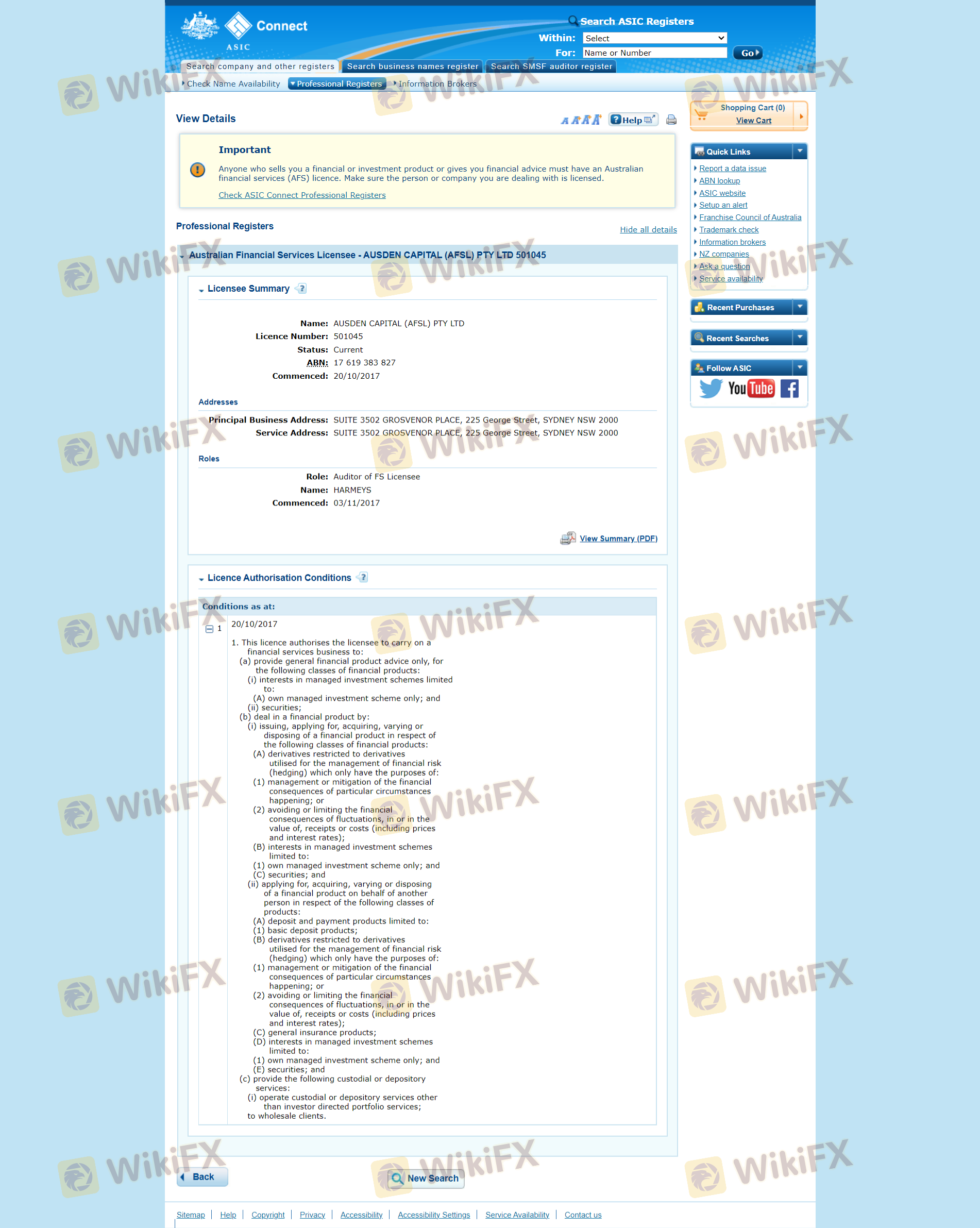 Status regulasi broker adalah faktor kritis dalam menentukan keamanannya. Ausden mengklaim beroperasi di bawah yurisdiksi Australian Securities and Investments Commission (ASIC). Namun, beberapa sumber menunjukkan bahwa Ausden tidak diatur dan tidak memiliki lisensi yang diperlukan untuk beroperasi secara legal. Hal ini menimbulkan kekhawatiran signifikan mengenai keamanan dana pelanggan dan keabsahan broker secara keseluruhan.
