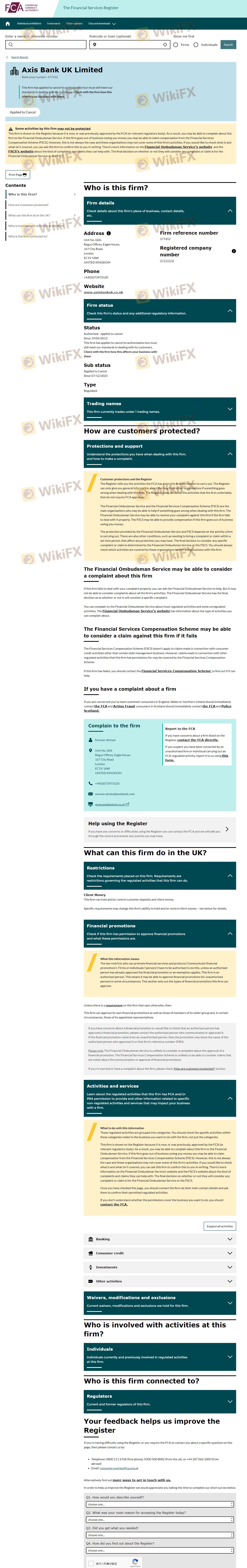Mengenai legitimasi broker forex AXIS BANK, ia menyediakan Kerajaan Inggris FCA, dan (Kami juga melakukan investigasi lapangan terkait aspek keamanan.).