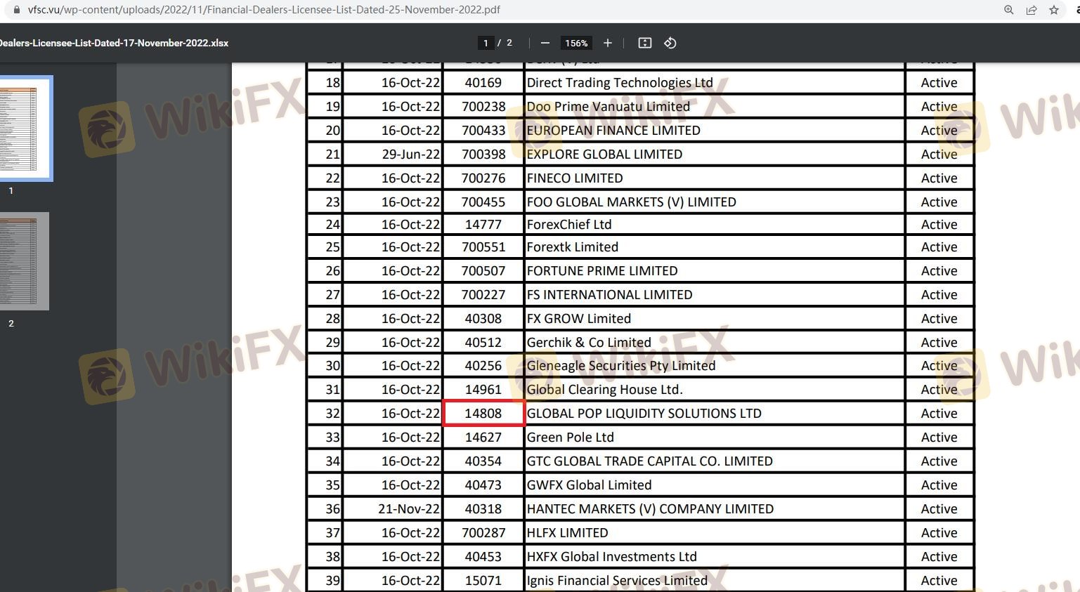 | Vanuatu Financial Services Commission (VFSC) | 14808 | Vanuatu | Aktif |