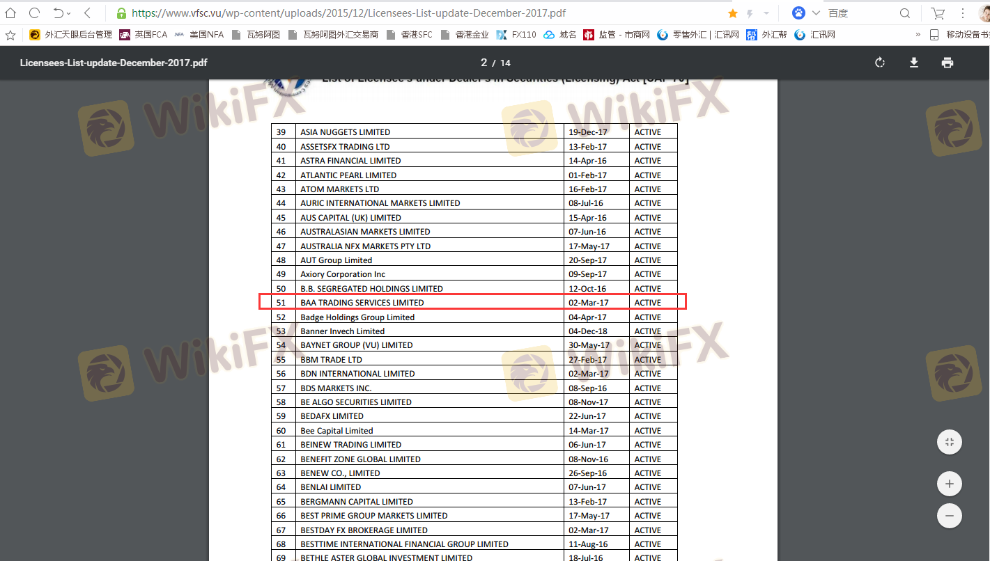 Mengenai legitimasi broker forex BAAFX, ia menyediakan Vanuatu VFSC, dan .