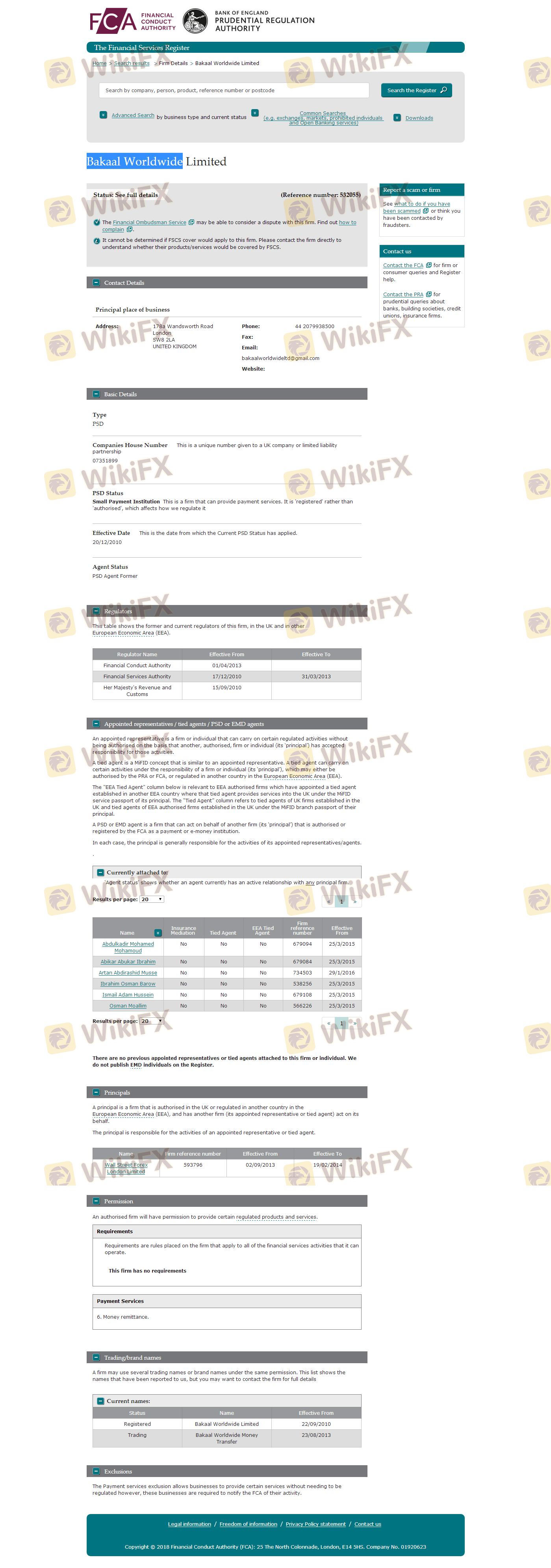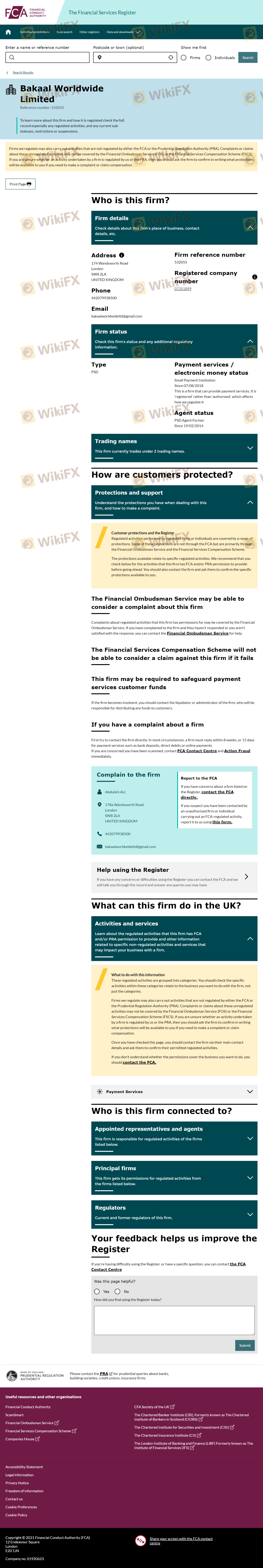 Mengenai legitimasi broker forex BAK, ia menyediakan Kerajaan Inggris FCA, dan (Kami juga melakukan investigasi lapangan terkait aspek keamanan.).