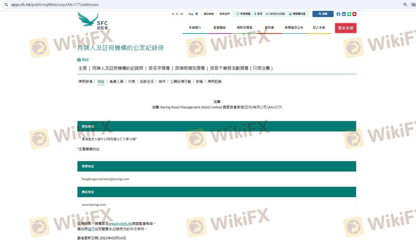 Mengenai legitimasi broker forex Barings, ia menyediakan Hong Kong SFC, dan (Kami juga melakukan investigasi lapangan terkait aspek keamanan.).