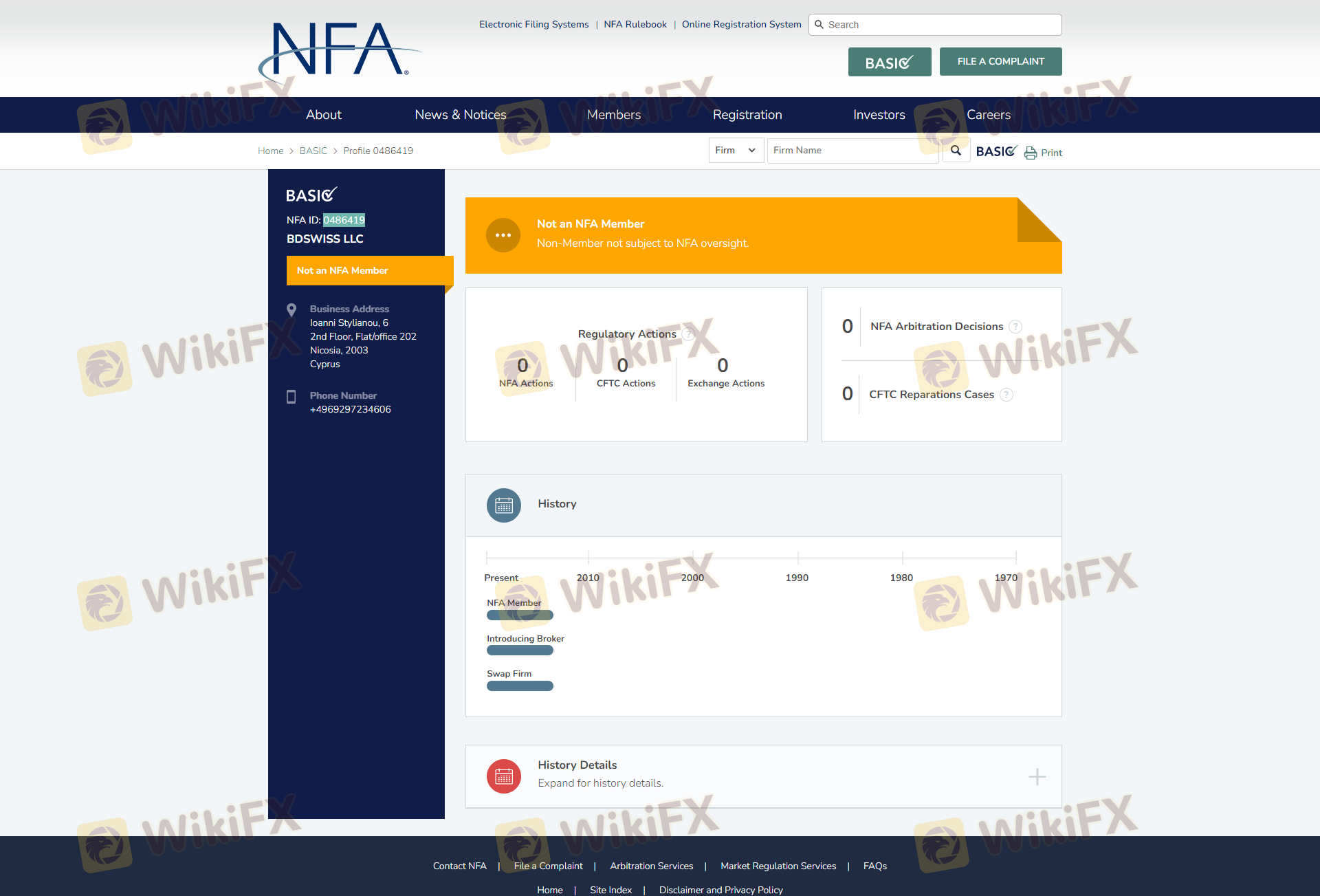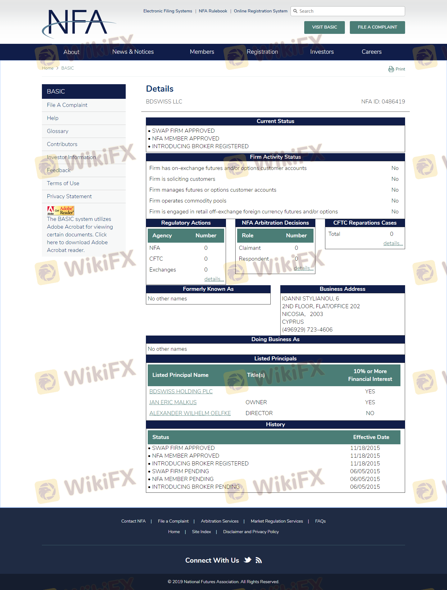 Mengenai legitimasi broker forex BDSWISS, ia menyediakan Seychelles FSA, Amerika Serikat NFA, Siprus CYSEC, dan (Kami juga melakukan investigasi lapangan terkait aspek keamanan.).