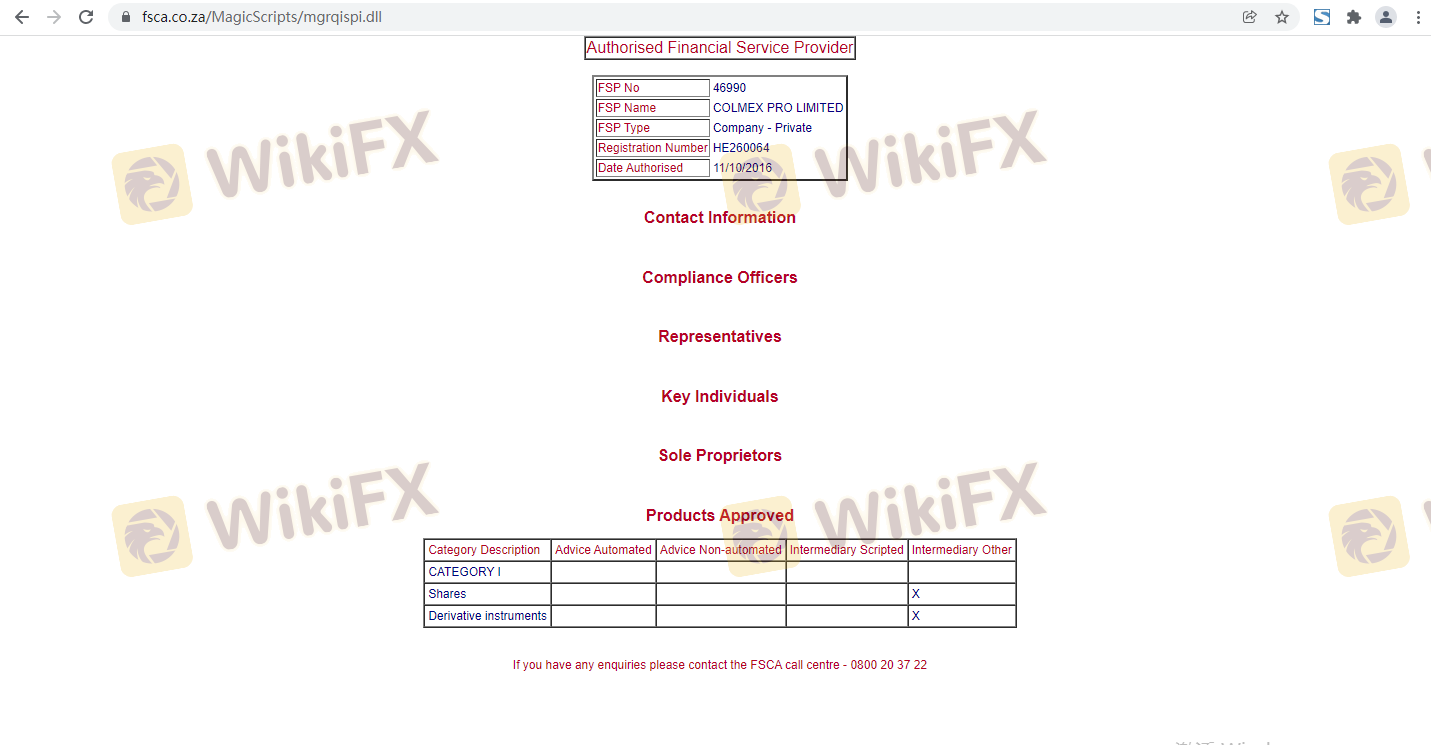 | Badan Regulasi | Nomor Lisensi | Wilayah Regulasi | Status Verifikasi |