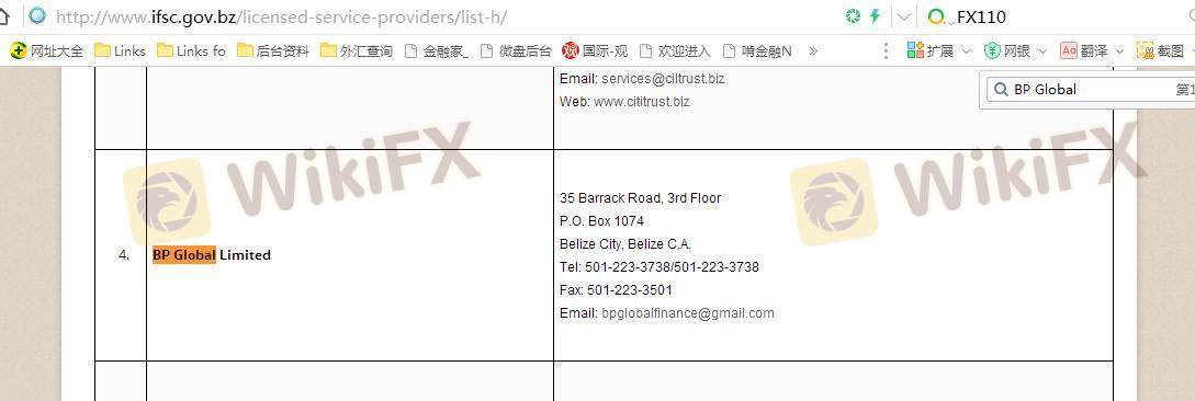 Mengenai legitimasi broker forex BP GLOBAL, ia menyediakan Belize FSC, dan (Kami juga melakukan investigasi lapangan terkait aspek keamanan.).