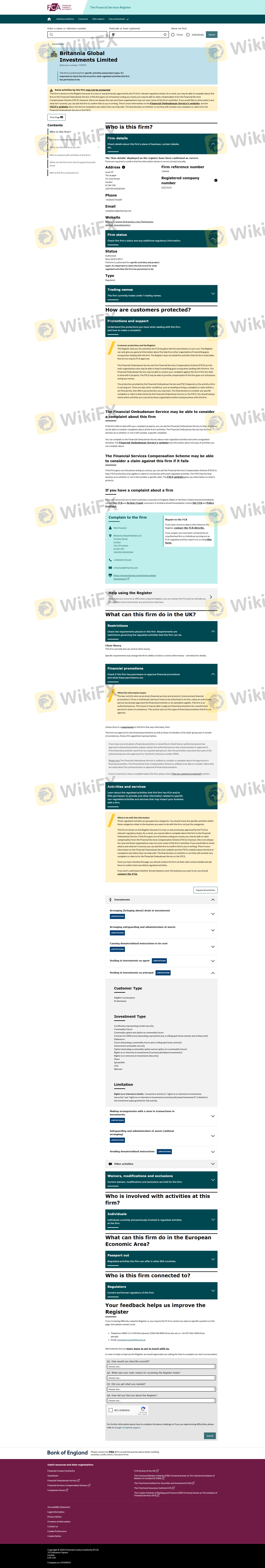 Mengenai legitimasi broker forex BRITANNIA, ia menyediakan Kerajaan Inggris FCA, dan (Kami juga melakukan investigasi lapangan terkait aspek keamanan.).