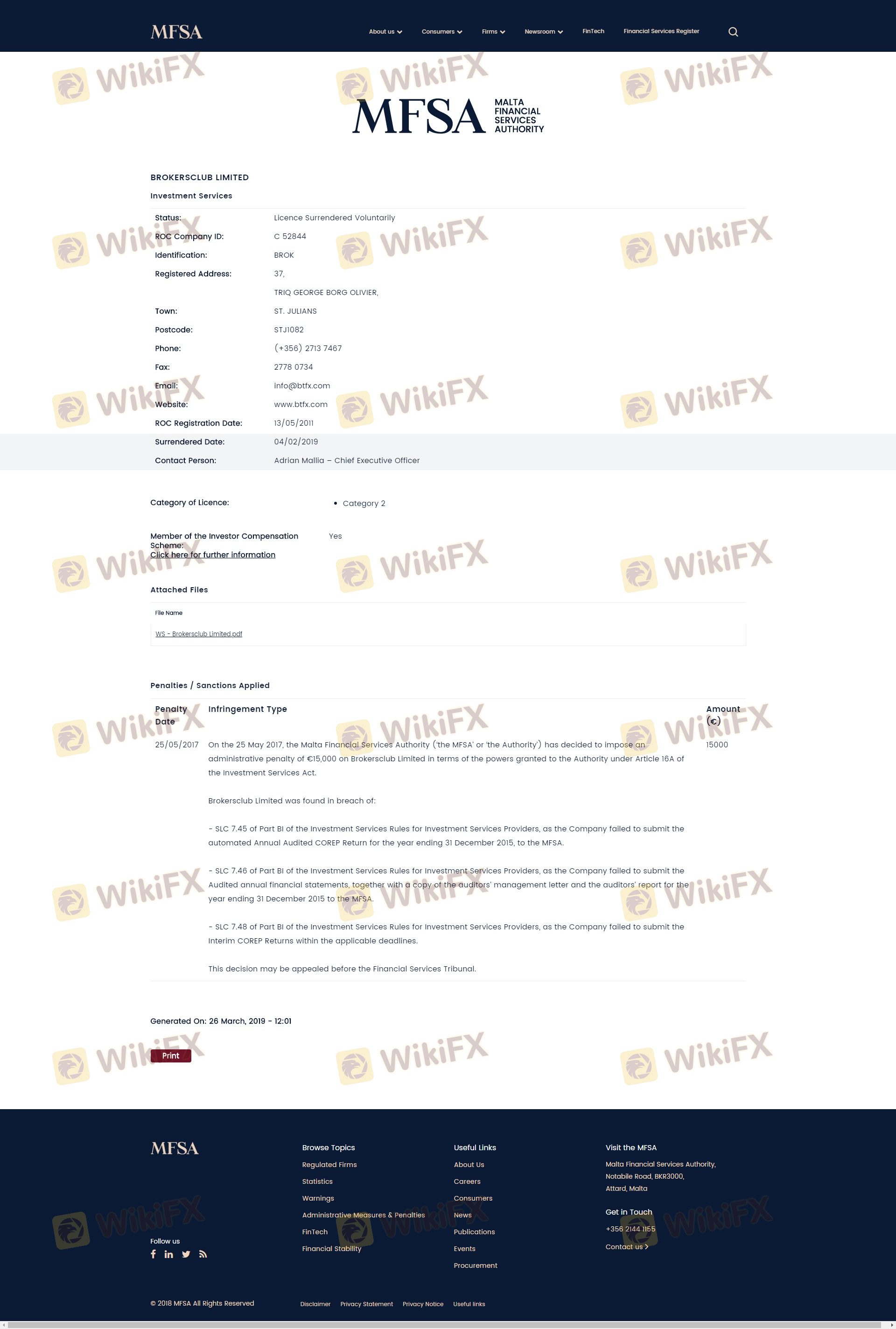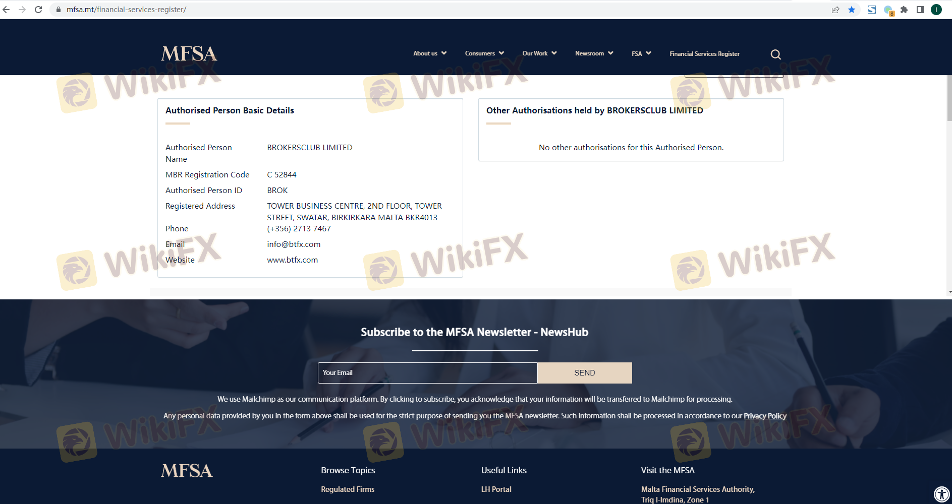 Mengenai legitimasi broker forex BTFX, ia menyediakan Malta MFSA, dan (Kami juga melakukan investigasi lapangan terkait aspek keamanan.).