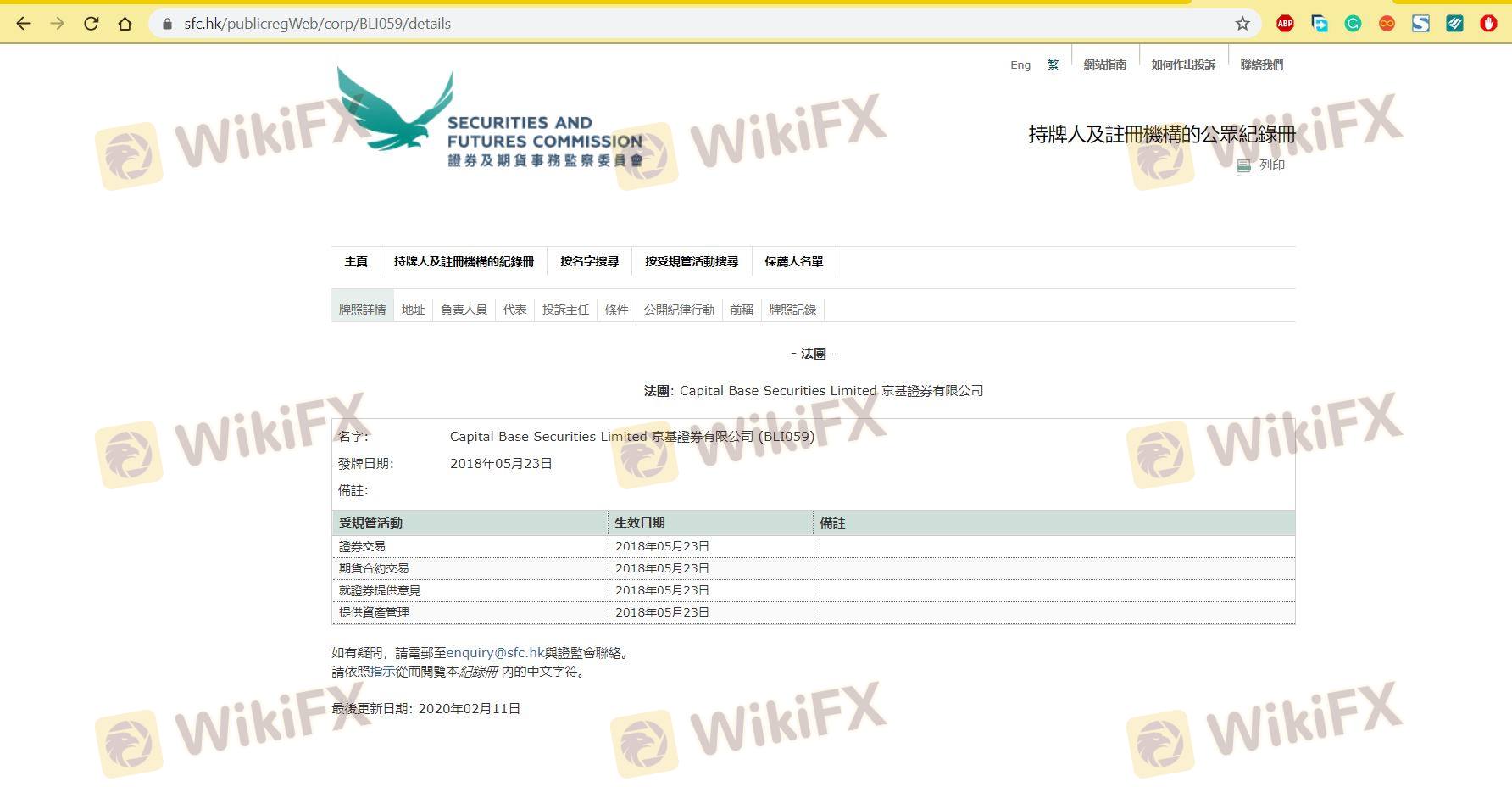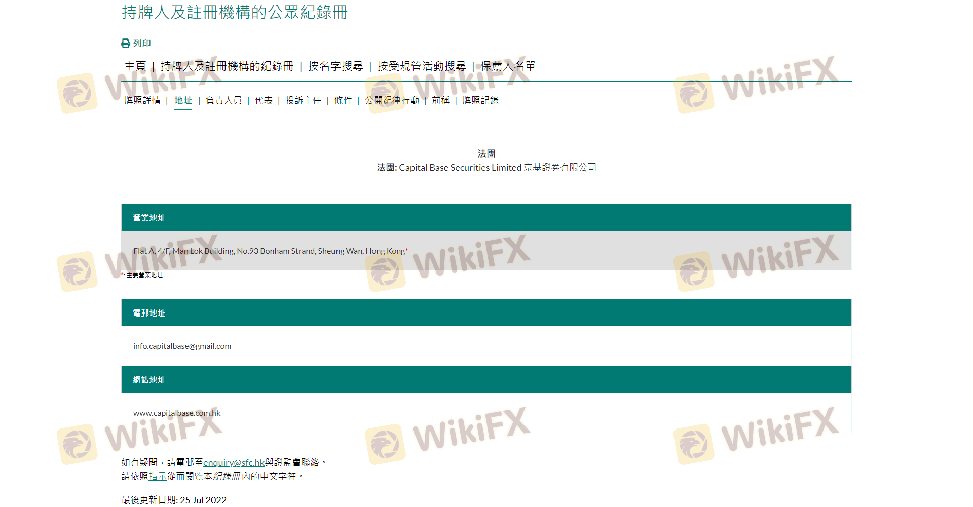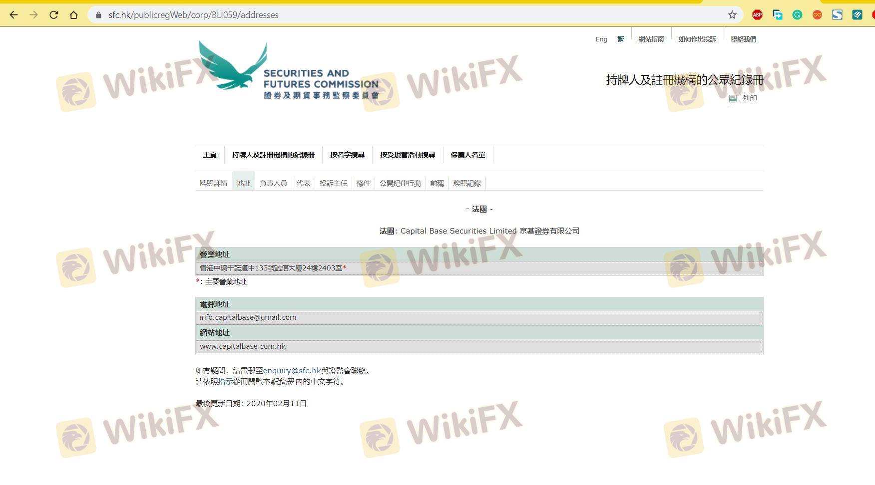 Mengenai legitimasi broker forex Capital Base, ia menyediakan Hong Kong SFC, dan (Kami juga melakukan investigasi lapangan terkait aspek keamanan.).