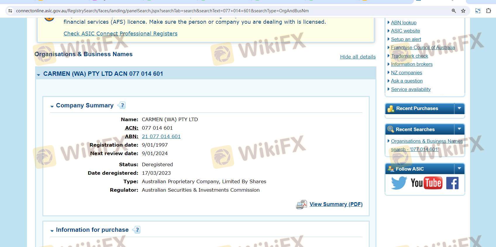 Mengenai legitimasi broker forex CARMENFX, ia menyediakan Australia ASIC, dan .