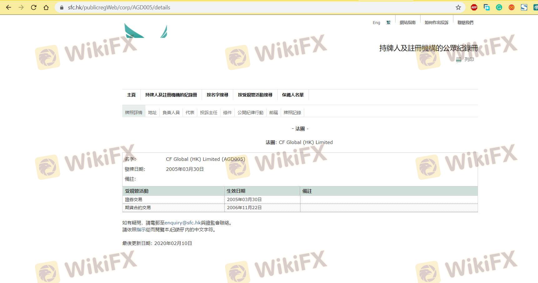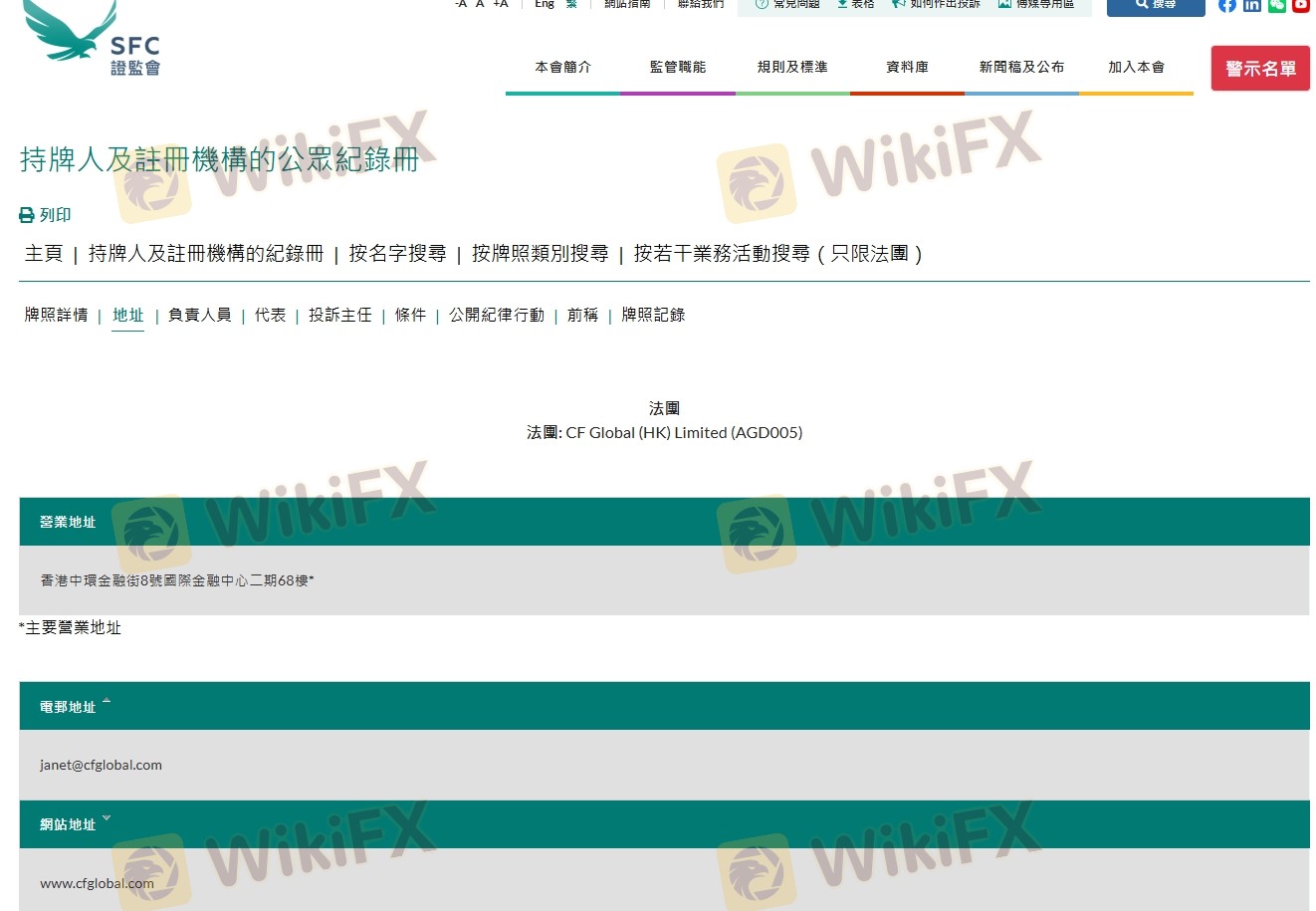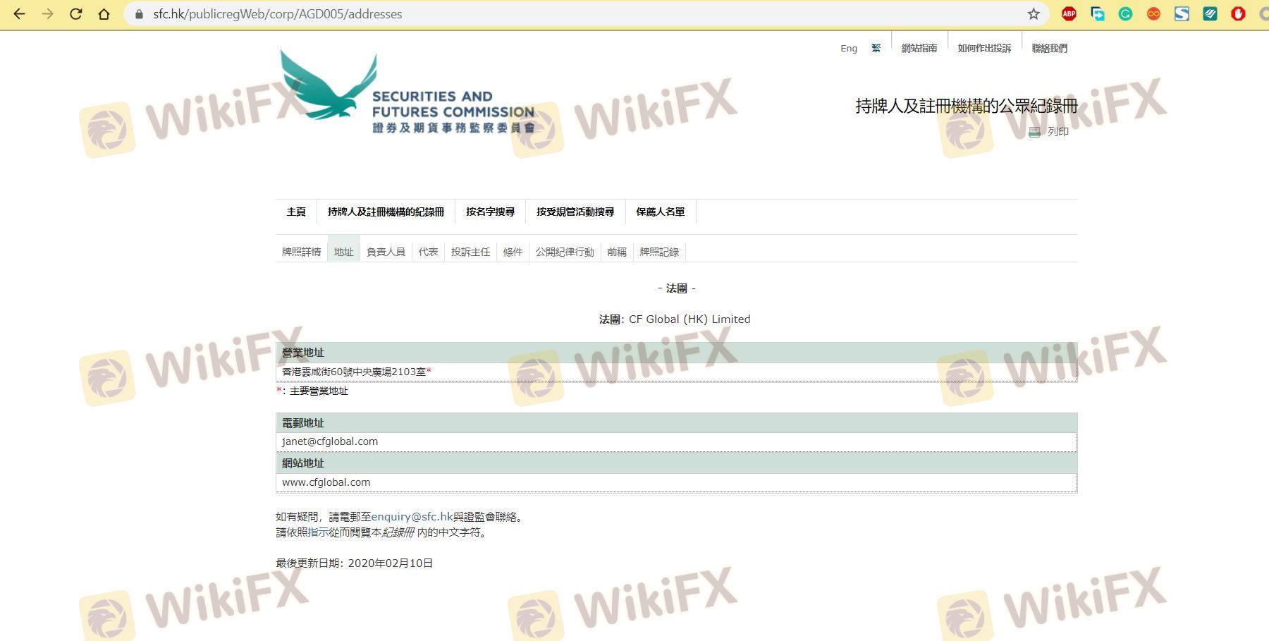 Mengenai legitimasi broker forex CF, ia menyediakan Hong Kong SFC, dan (Kami juga melakukan investigasi lapangan terkait aspek keamanan.).