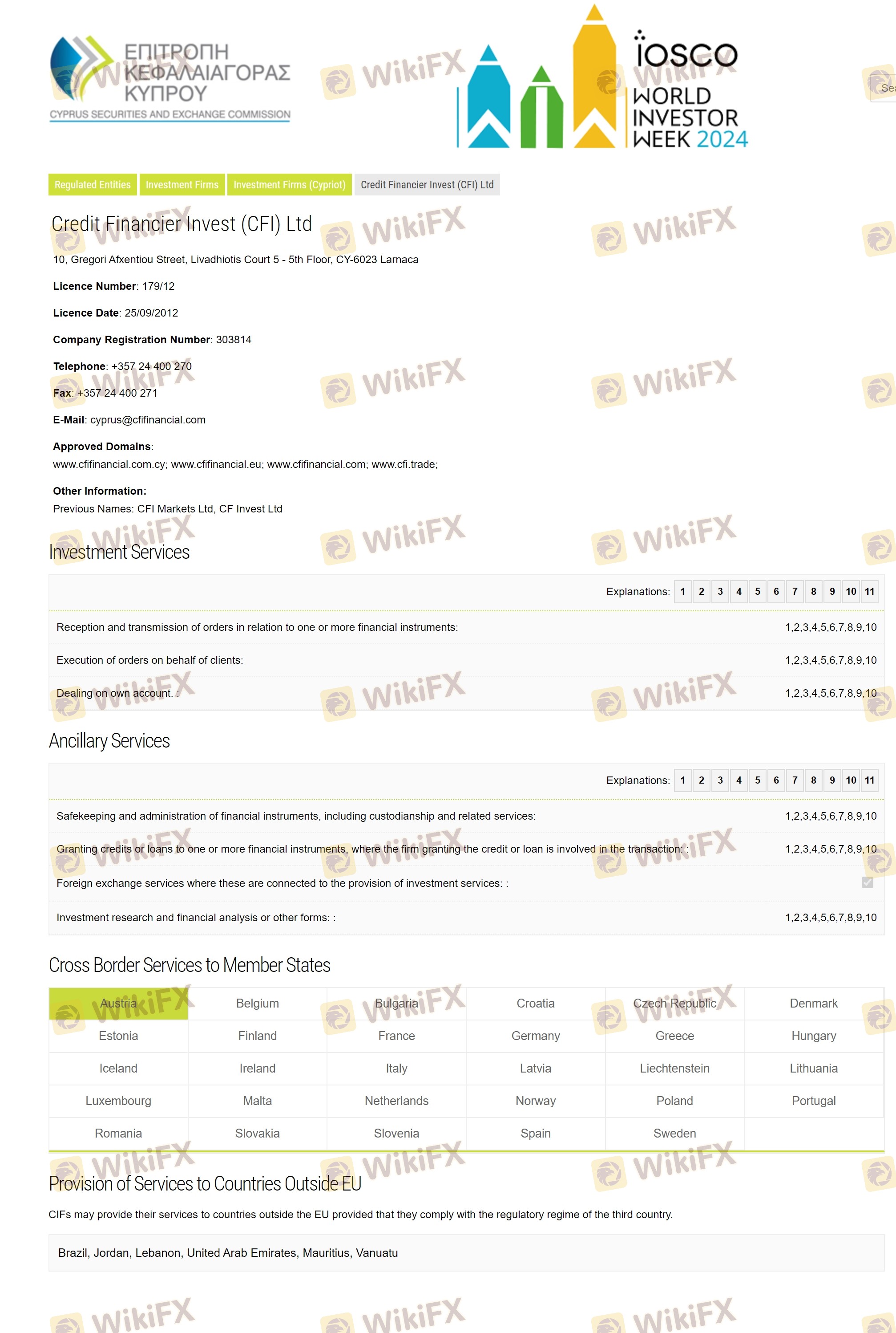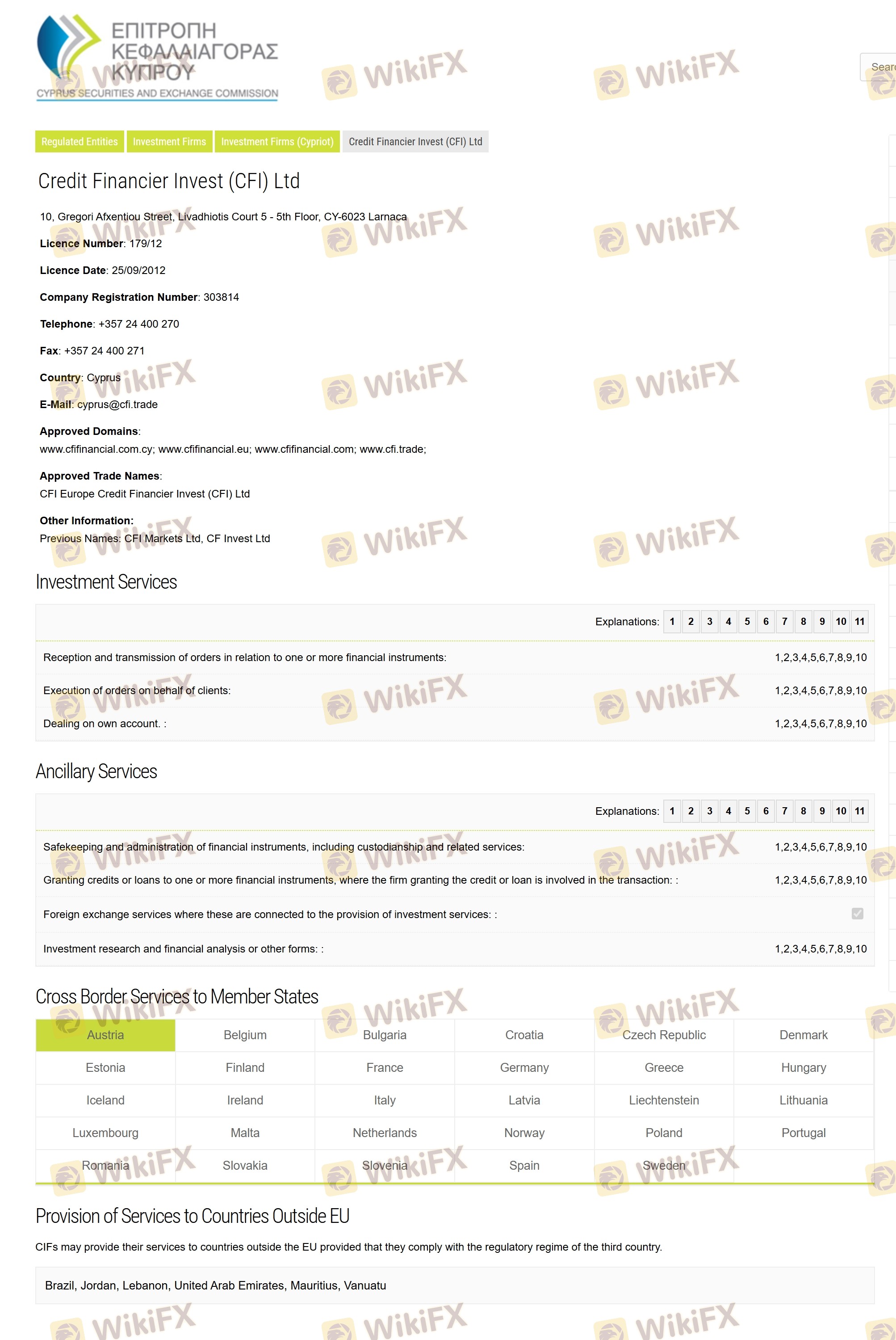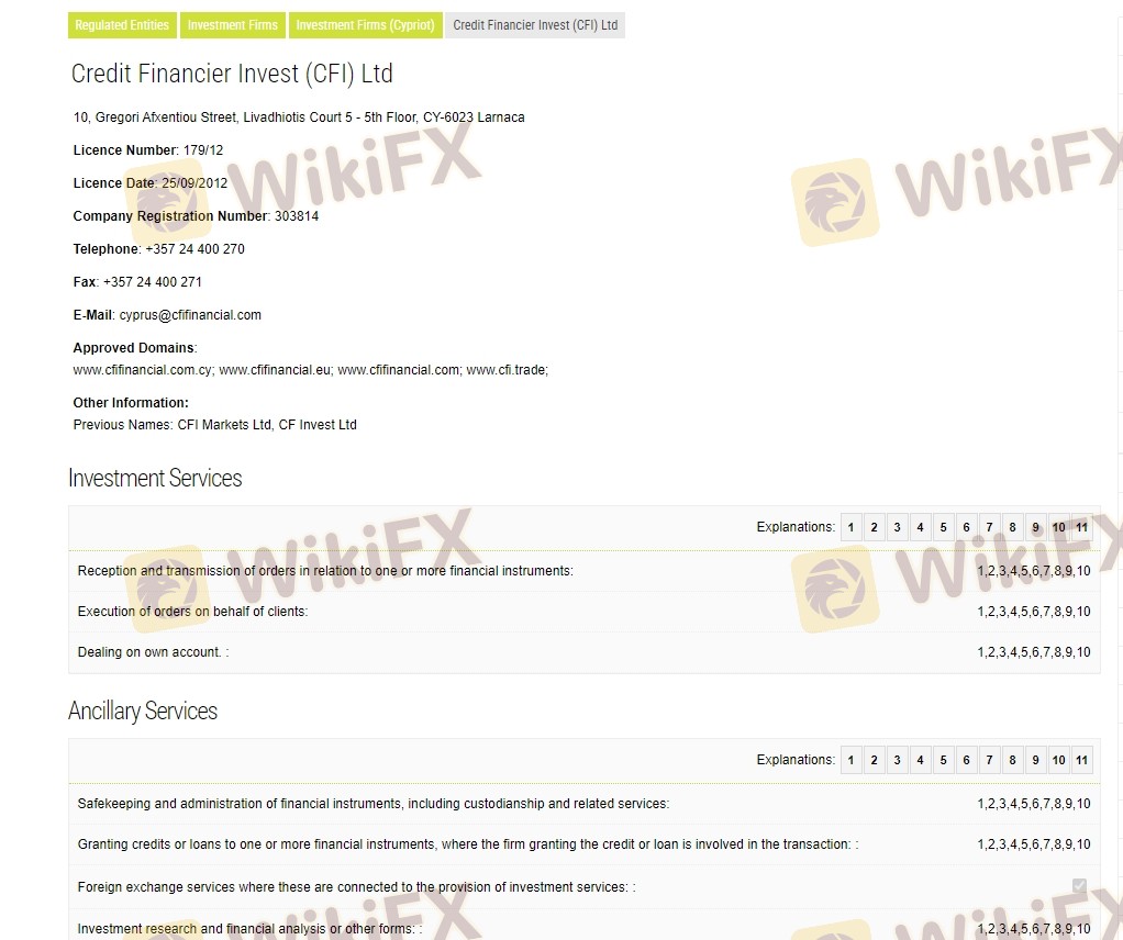 Mengenai legitimasi broker forex CFI, ia menyediakan Siprus CYSEC, dan (Kami juga melakukan investigasi lapangan terkait aspek keamanan.).