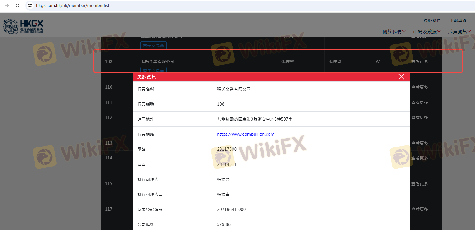 | Hong Kong Gold and Silver Exchange Society | 108 | Hong Kong | Terverifikasi |