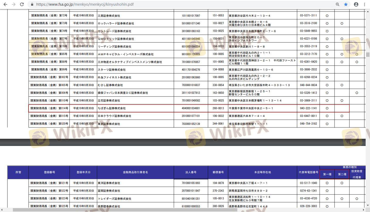 Mengenai legitimasi broker forex Chibagin Securities, ia menyediakan Jepang FSA, dan .