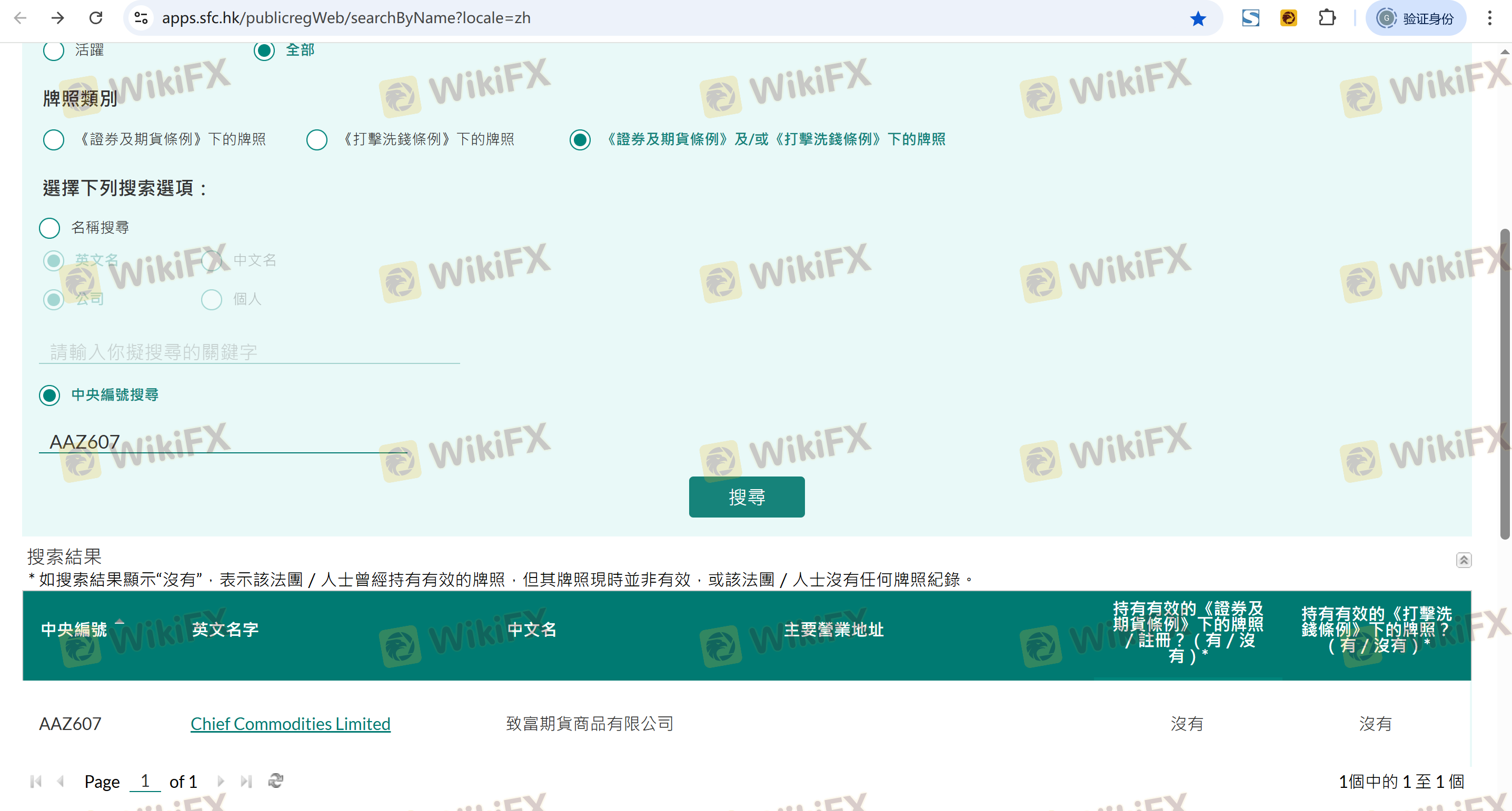 Mengenai legitimasi broker forex CHIEF, ia menyediakan Hong Kong SFC, dan (Kami juga melakukan investigasi lapangan terkait aspek keamanan.).