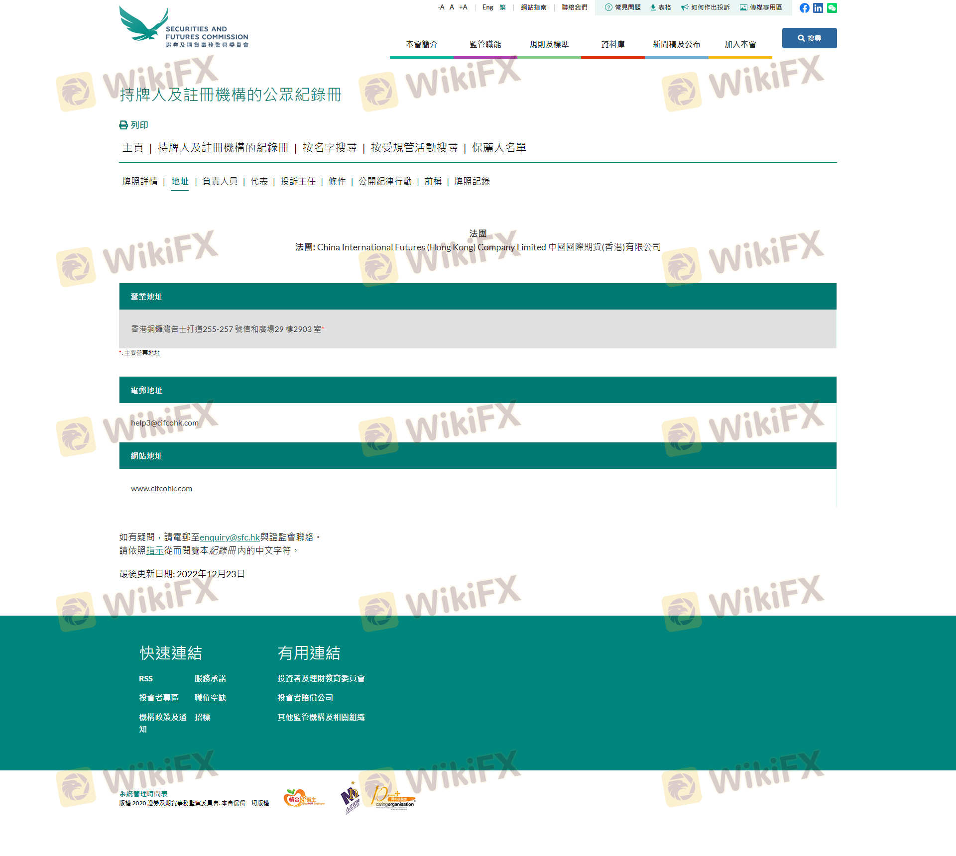 Mengenai legitimasi broker forex China International Futures (Hong Kong) Company Limited, ia menyediakan Hong Kong SFC, dan (Kami juga melakukan investigasi lapangan terkait aspek keamanan.).