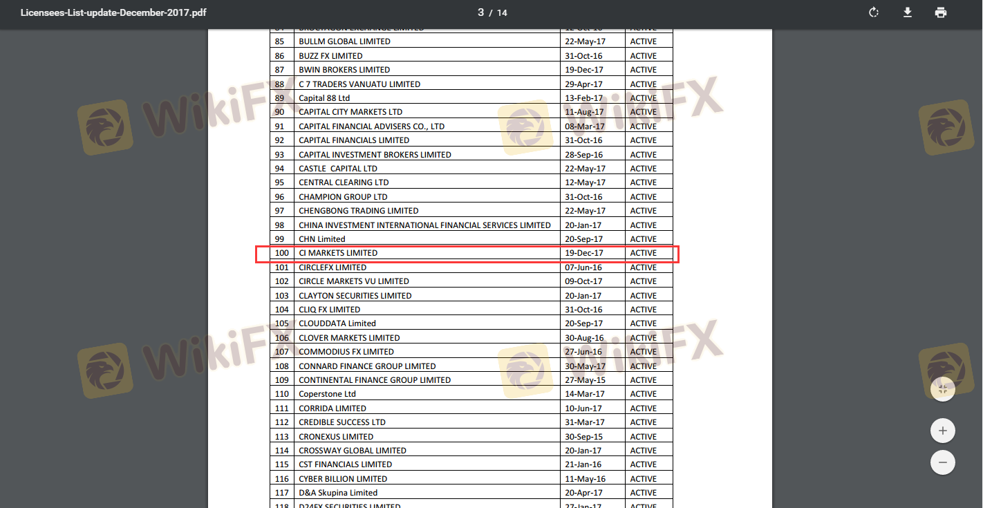 Mengenai legitimasi broker forex CI Markets, ia menyediakan Vanuatu VFSC, dan .