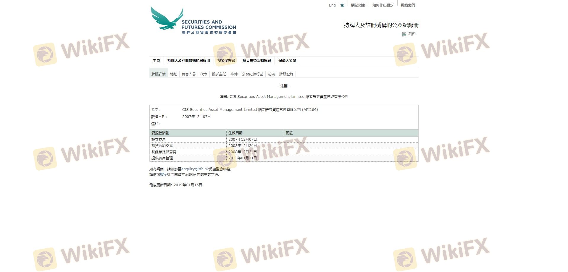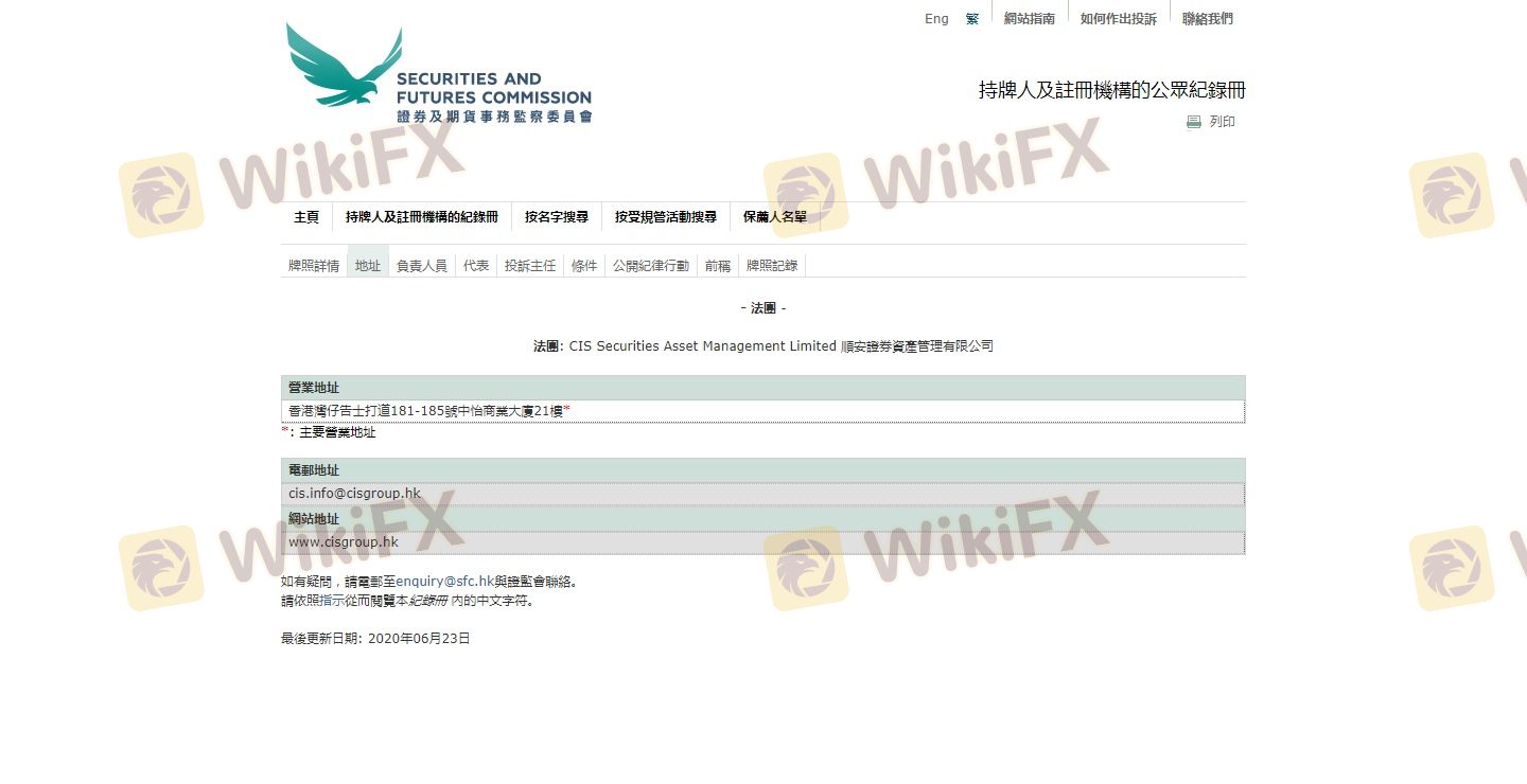 SFC dikenal karena penegakan regulasi keuangan yang ketat, yang mencakup persyaratan untuk kecukupan modal, pemisahan dana klien, dan audit rutin. Fakta bahwa CIS diatur oleh SFC menunjukkan tingkat kredibilitas dan mengurangi kemungkinan aktivitas penipuan. Selanjutnya, selama periode evaluasi kami, tidak ditemukan pengungkapan regulasi negatif terkait CIS, yang menunjukkan kepatuhan terhadap standar SFC.
