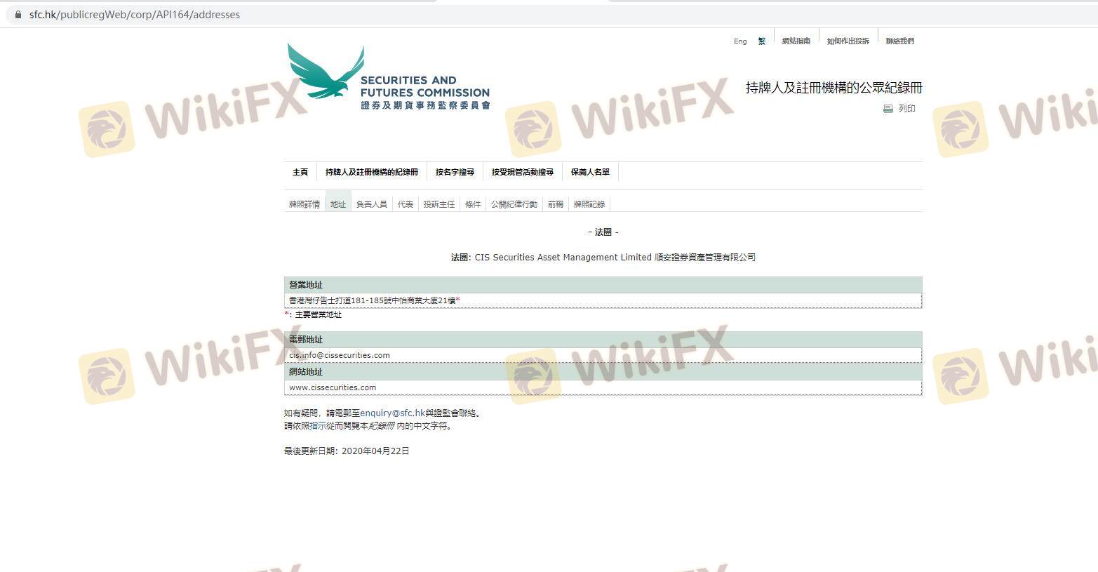 Mengenai legitimasi broker forex CIS, ia menyediakan Hong Kong SFC, dan (Kami juga melakukan investigasi lapangan terkait aspek keamanan.).