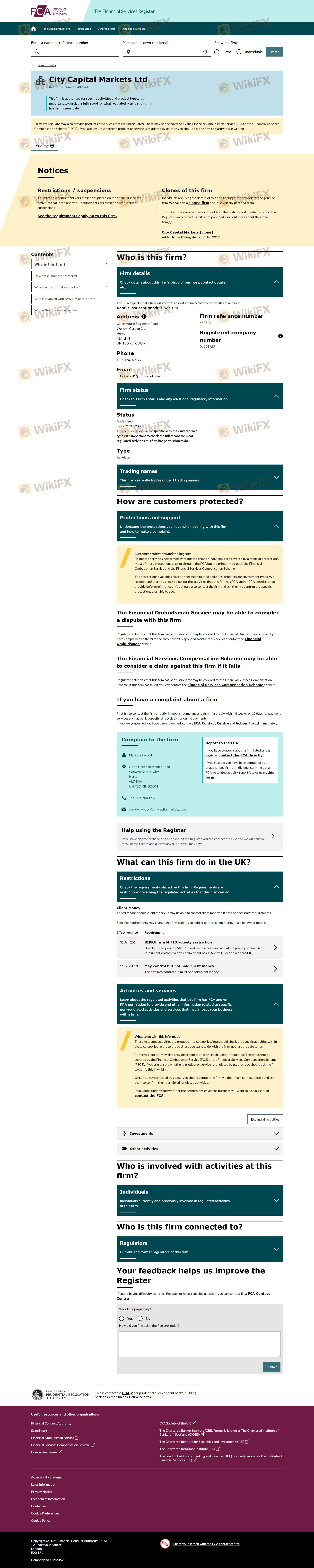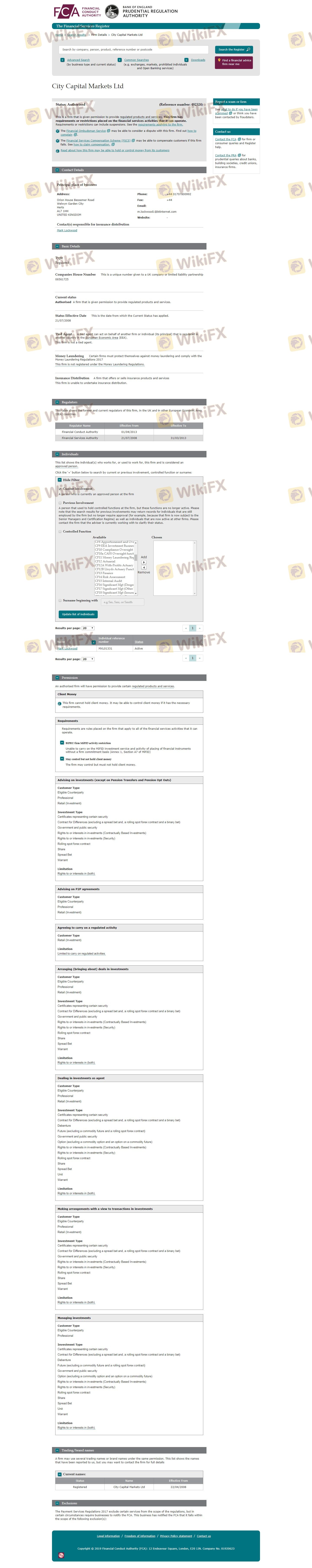 Mengenai legitimasi broker forex City Capital Markets, ia menyediakan Kerajaan Inggris FCA, dan .