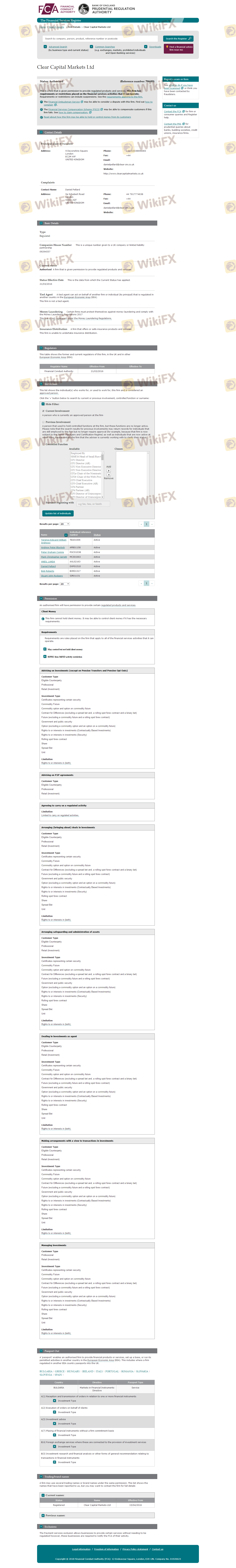Mengenai legitimasi broker forex Clear Capital Markets, ia menyediakan Kerajaan Inggris FCA, dan (Kami juga melakukan investigasi lapangan terkait aspek keamanan.).