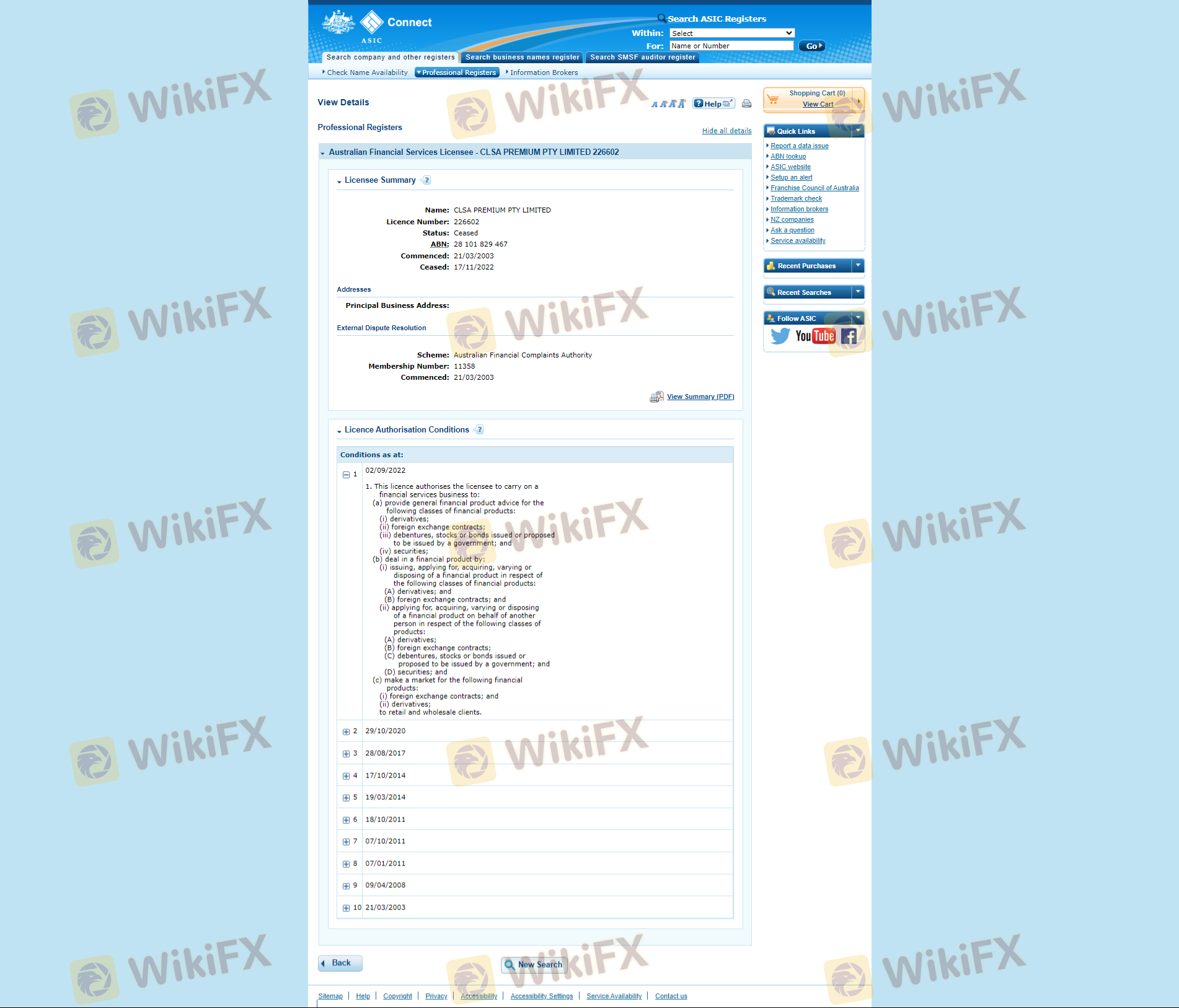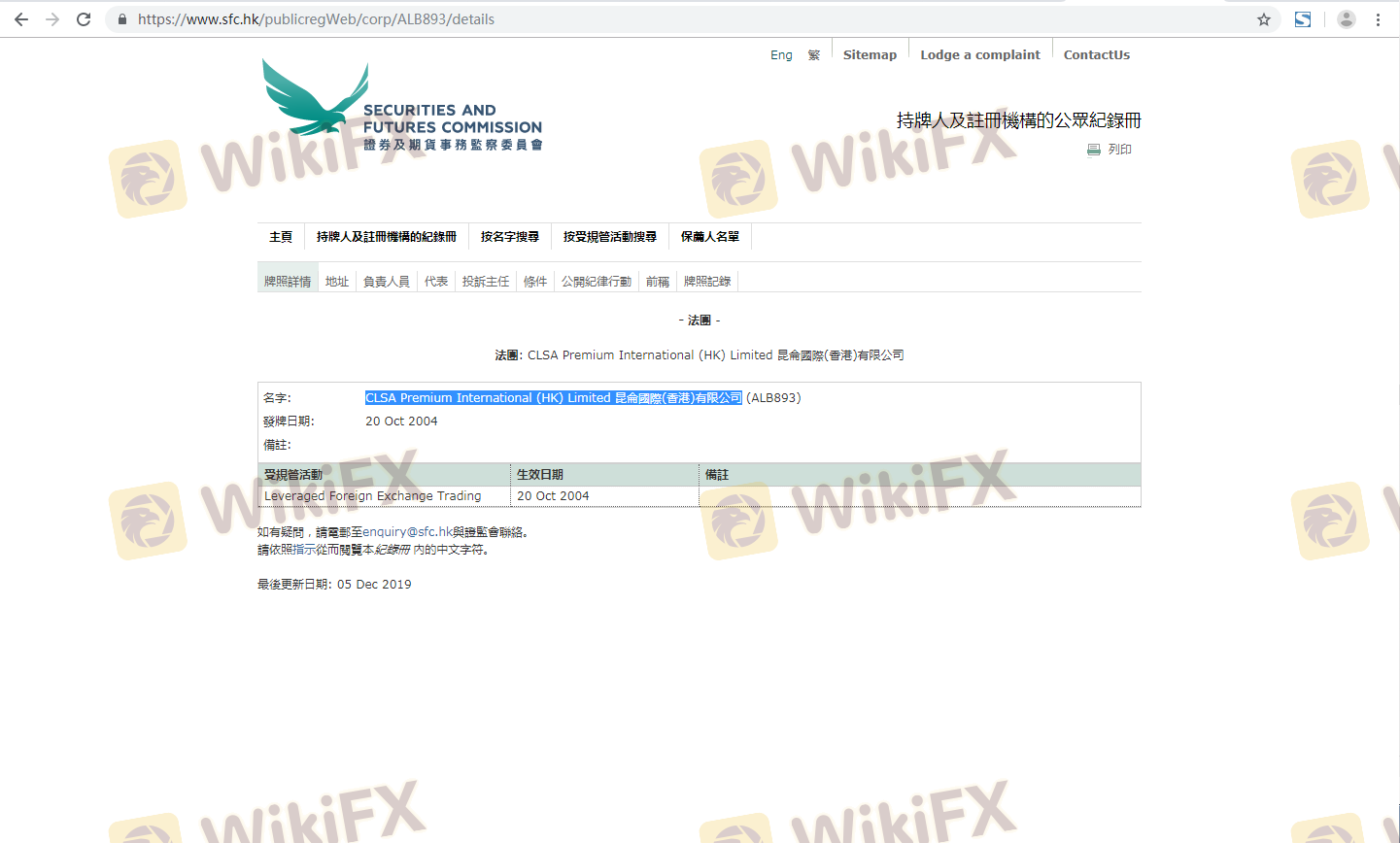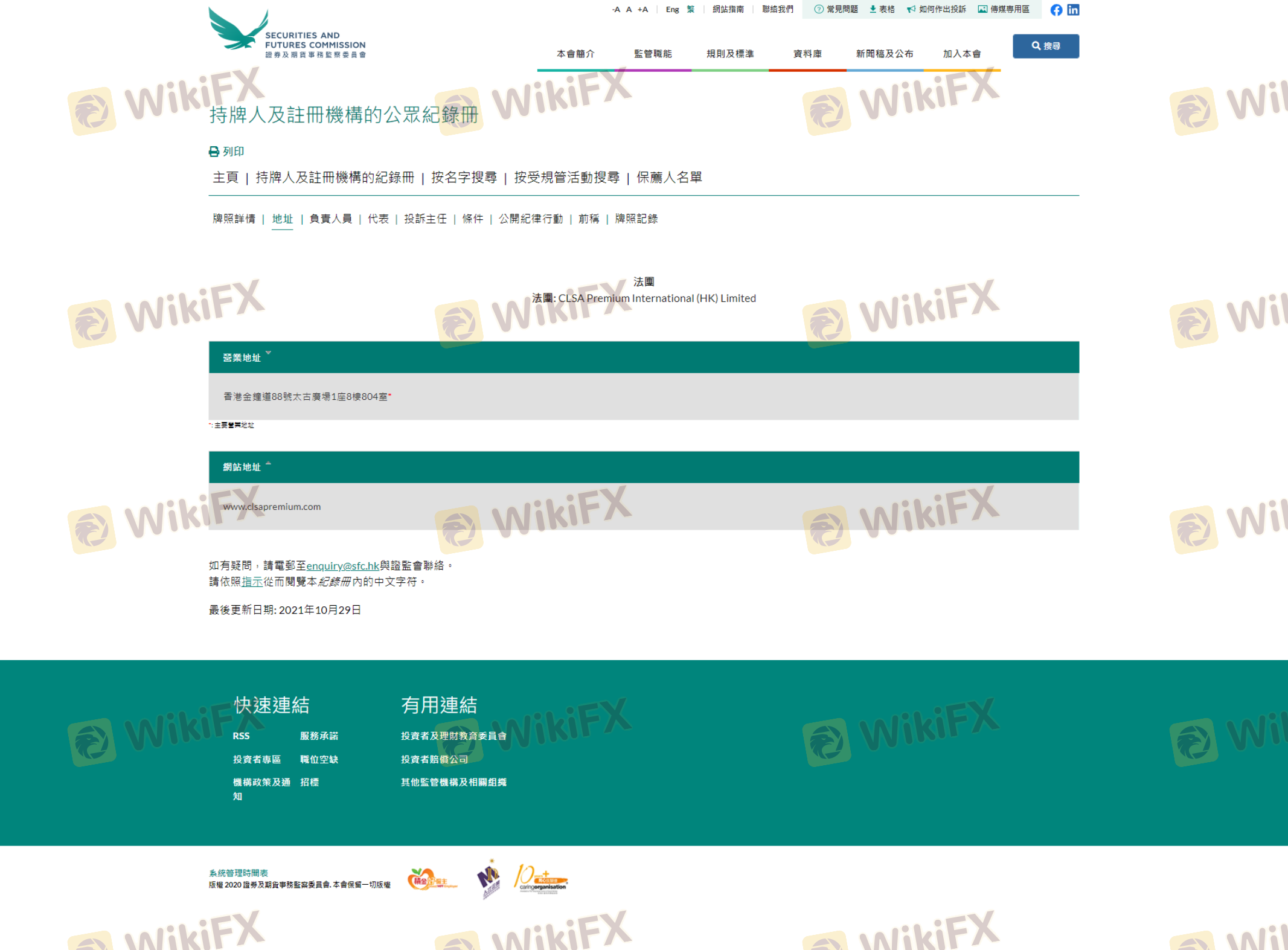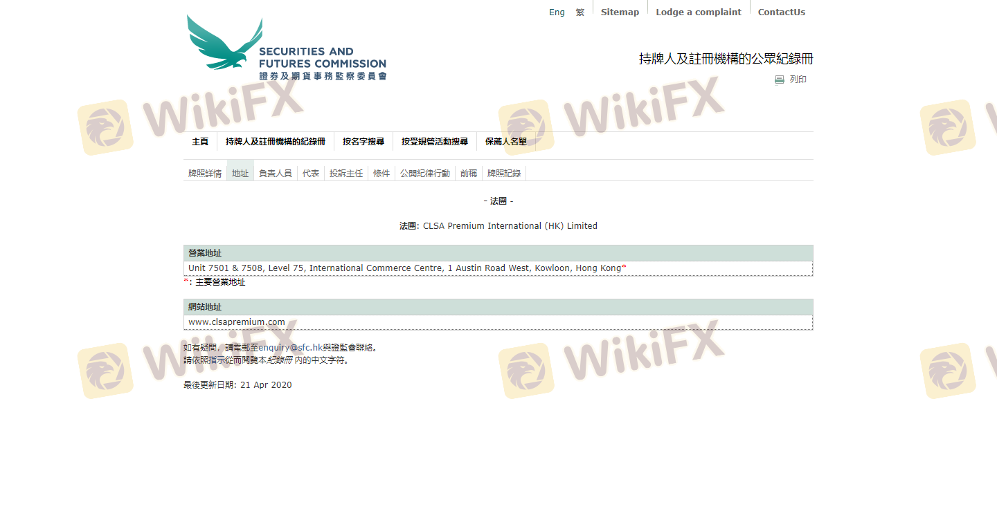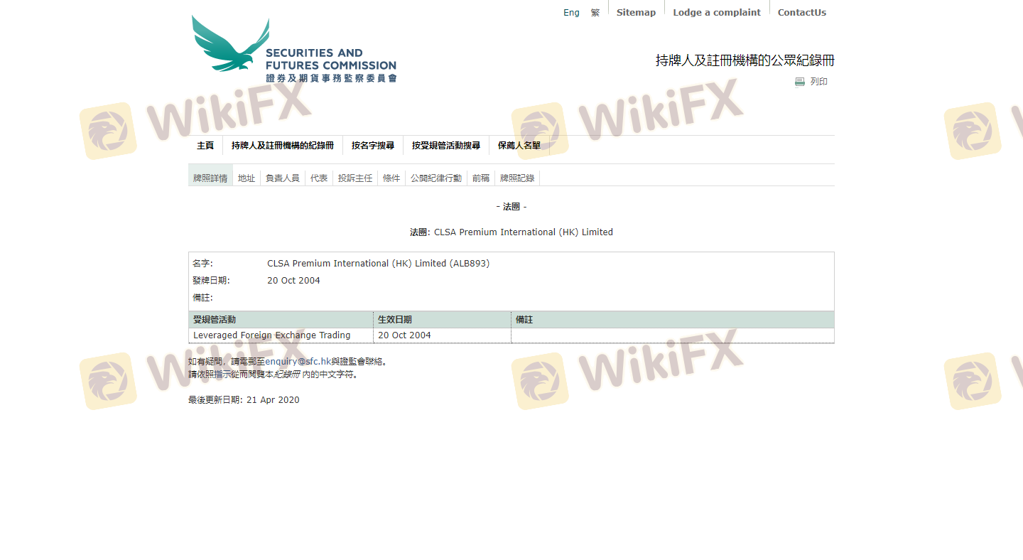 Mengenai legitimasi broker forex CLSA Premium, ia menyediakan Hong Kong SFC, Australia ASIC, dan (Kami juga melakukan investigasi lapangan terkait aspek keamanan.).